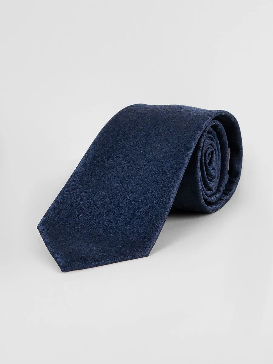 Темно-синий галстук с фактурой, которую можно увидеть под определенным углом. Если смотреть прямо, то она практически не заметна. Ткань галстука 100% микрофибра, внутри есть подклад.
