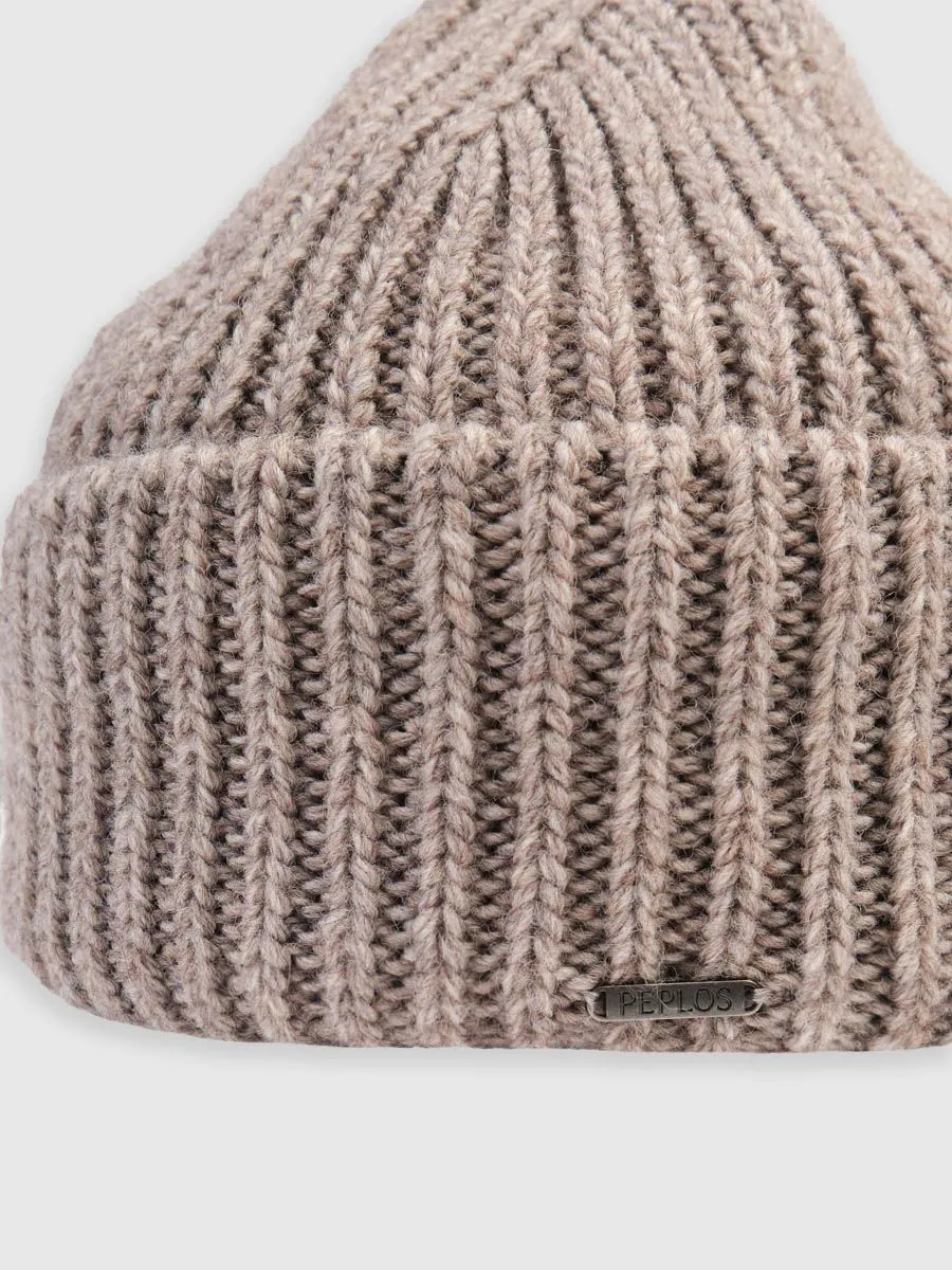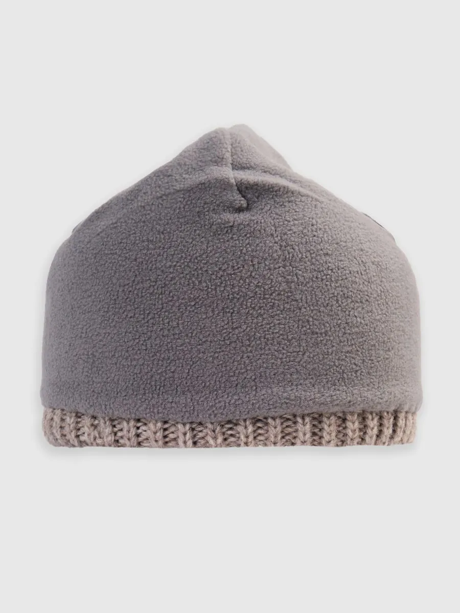Серо-бежевая мужская шапка с отворотом. Шапка с подкладом, макушка контурная.