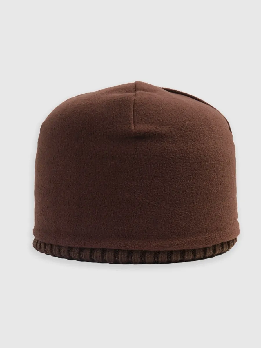 Мужская шапка кофейного цвета с широким отворотом. Мягкая и теплая, она станет незаменимым аксессуаром в холодное время года и подчеркнет индивидуальность своего владельца.