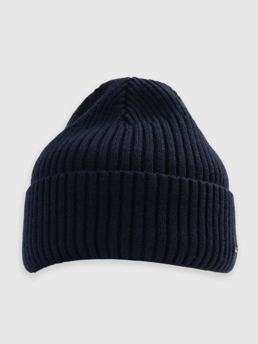 Мужская шапка глубокого синего оттенка, утепленная мягким подкладом, обеспечивает комфорт и защиту в холодную погоду. Классический отворот и аккуратная макушка создают современный и стильный аксессуар.