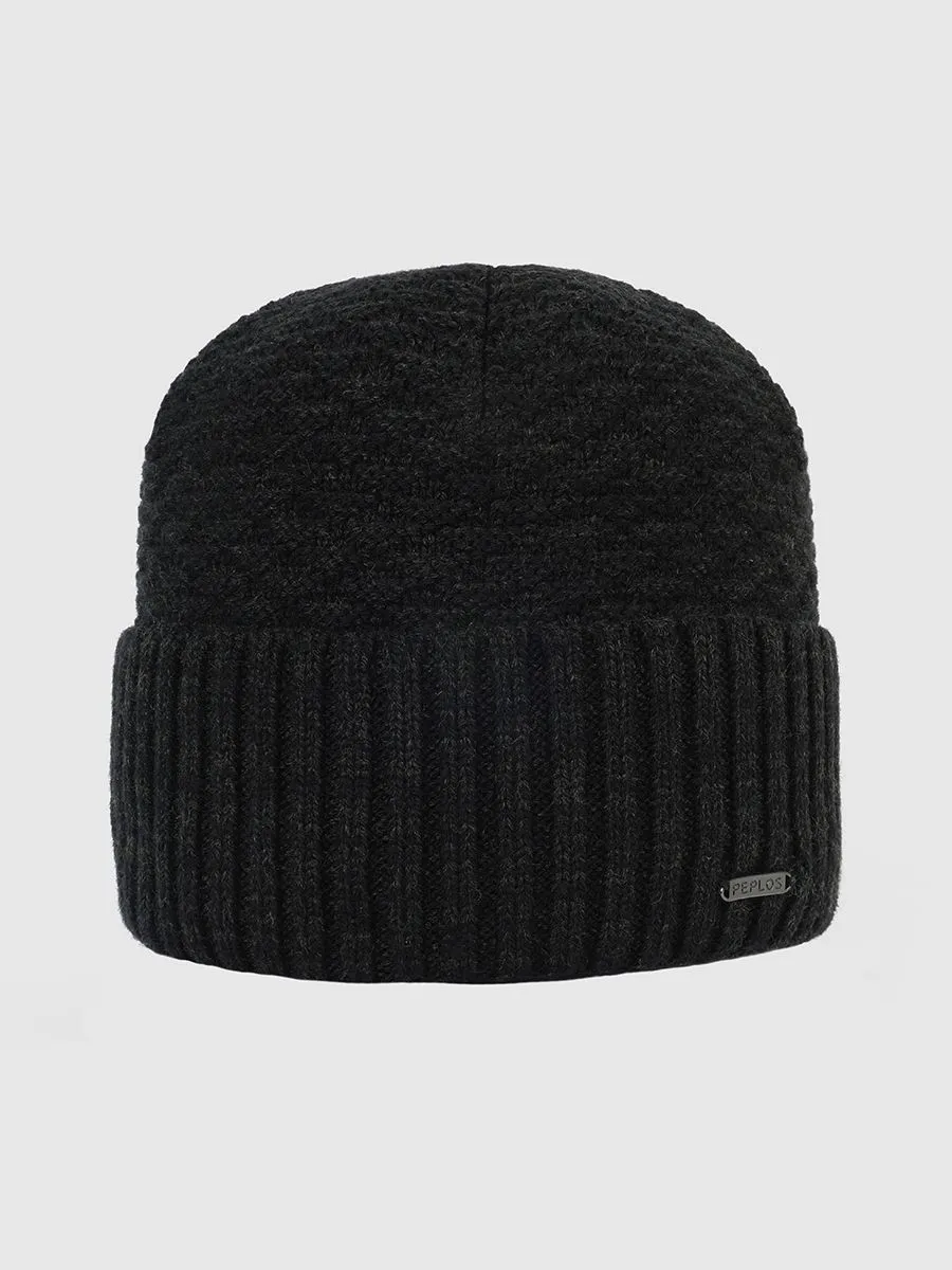 Демисезонная мужская шапка Peplos выполнена в черном цвете. Шапка утеплена флисом. Необычный узор вязки придает шапке изысканность, а цветовое решение делает головной убор универсальным в гардеробе.
