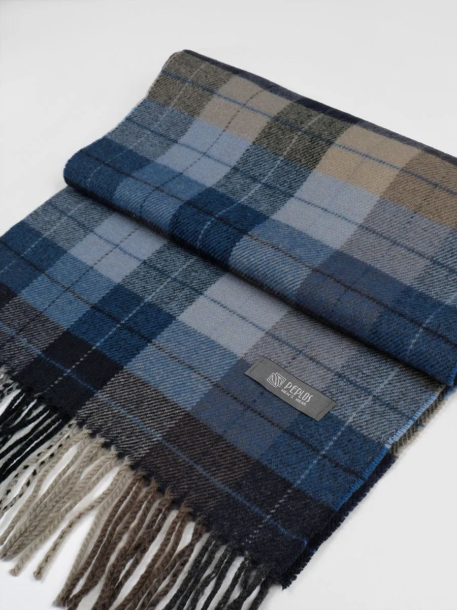 Яркий клетчатый шарф от Peplos будет акцентом в любом образе. Красивое сочетание синих, голубых и бежевых оттенков позволяет создавать интересные образы, объединяя различные элементы одежды. р шарфа 31*190 см.