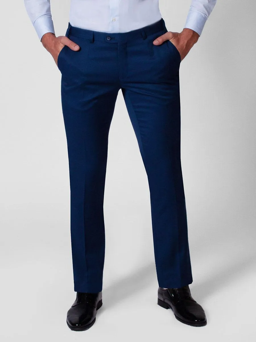 Стильные праздничные брюки Peplos сделают образ любого мужчины современным и привлекательным. Модель брюк выполнена из яркой ткани насыщенного синего цвета, которая также украшена микродизайном, придающим фактурность и объем изделию. Передние части половин брюк с боковыми карманами с подрезными бочками. Края карманов имеют отделочную строчку нитками в цвет ткани верха. В составе изделия содержится 84% полиэстера, 13% вискозы и 3% спандекса.