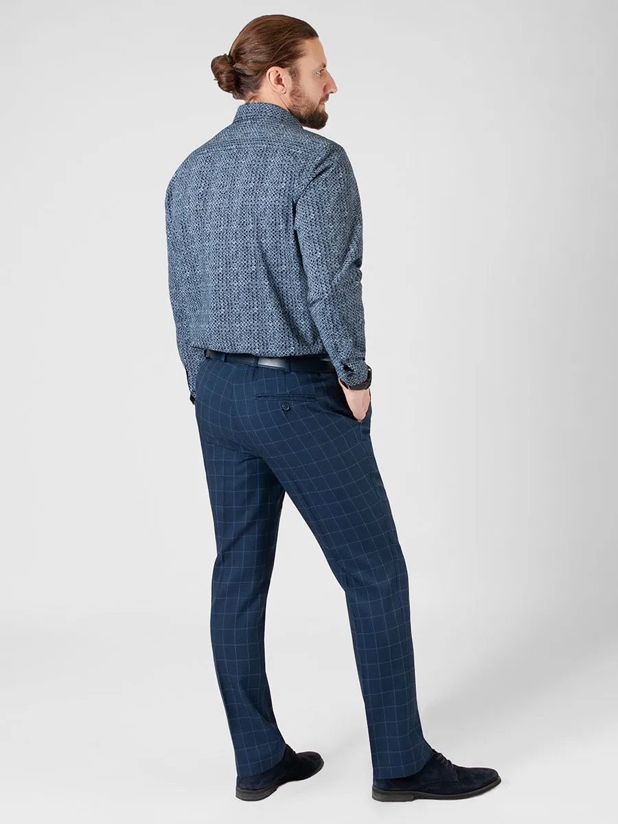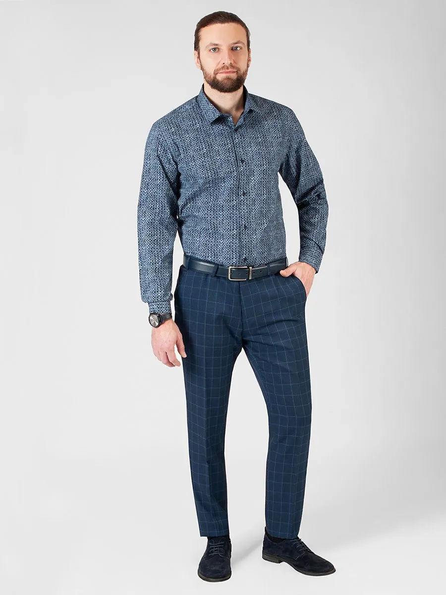 Тонкий контур клетки на весенне-летниих брюках светло-синего цвета, отлично подойдут как для торжественных мероприятий так и для сдержанного офисного образа. Сорочка: SH22143-R