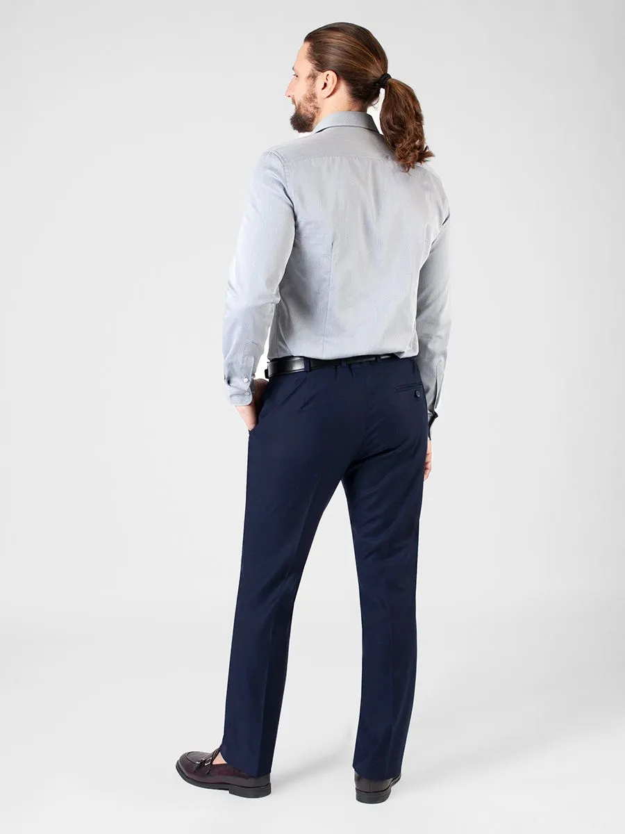 Однотонные брюки с лазерной выработкой, создающей эффект глубокого цвета и фактуры, придадут классическому образу дополнительный лоск и выдержанность.