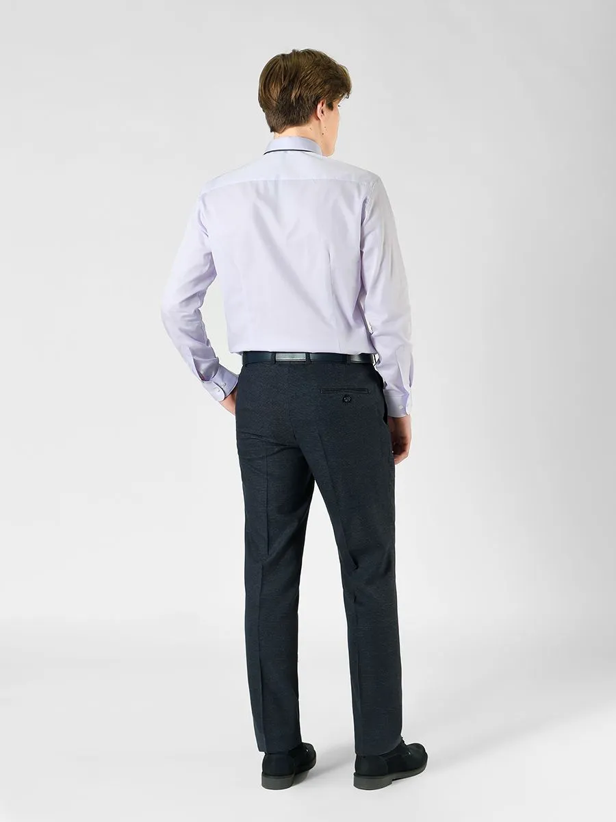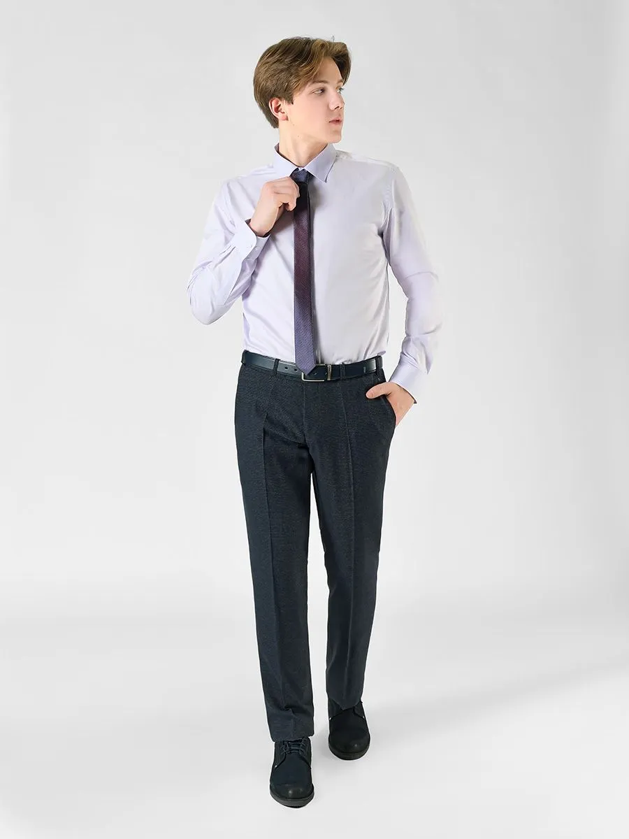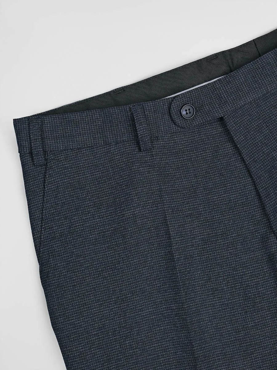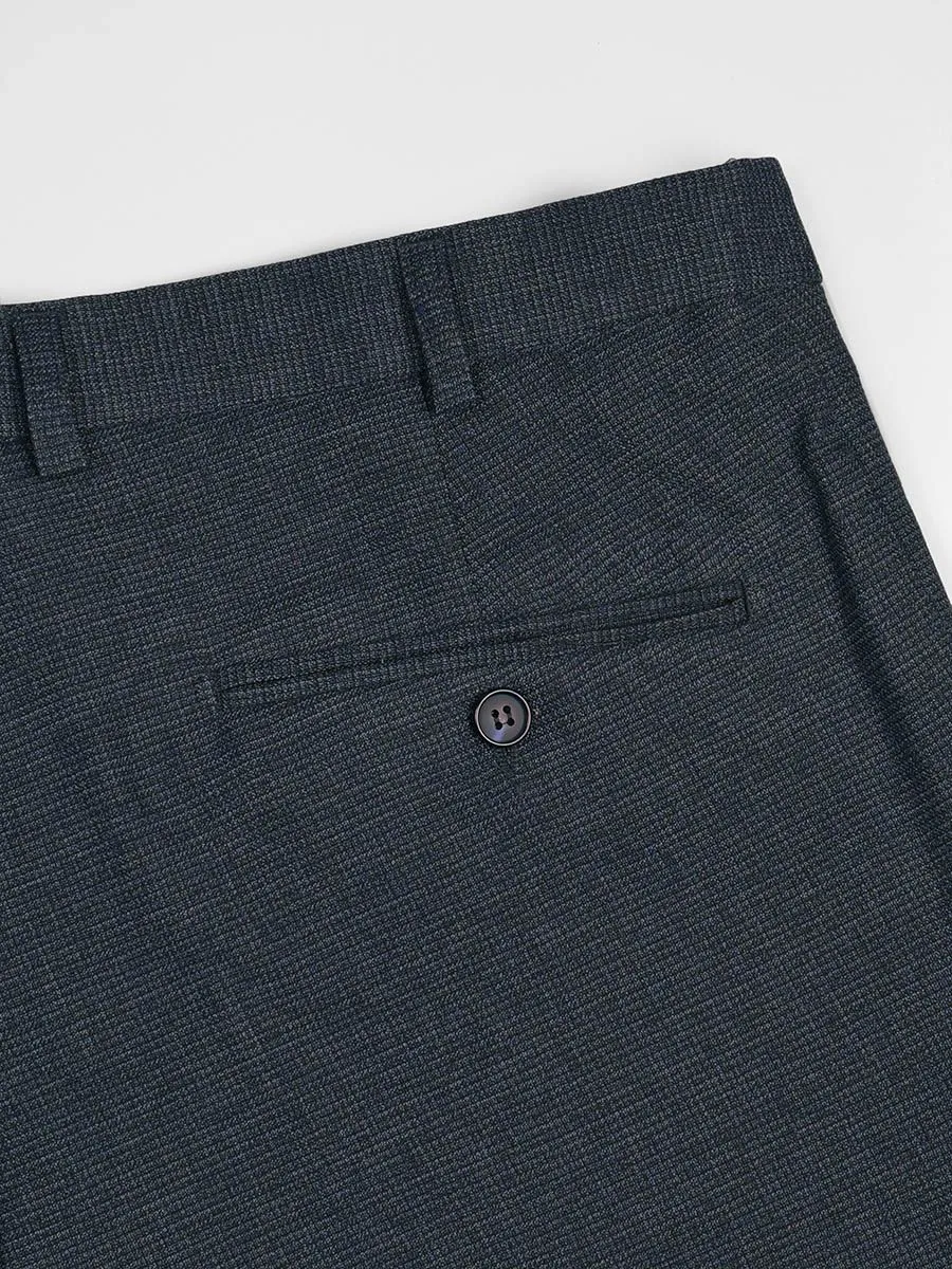 Брюки изготовлены из достаточно плотной костюмной ткани, поэтому они хорошо держат форму при соответствующем уходе. У ткани брюк есть микродизайн, создающий интересную фактуру. Брюки подходят для ежедневной носки, поскольку высококачественный полиэстер, входящий в состав брюк, наделяет их такими свойствами как износостойкость и долговечность.