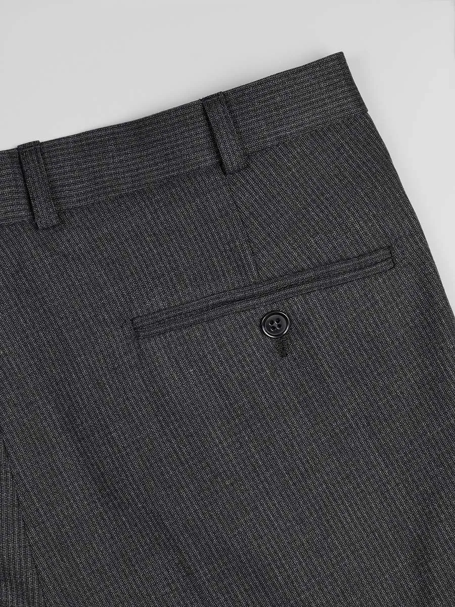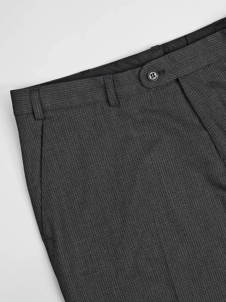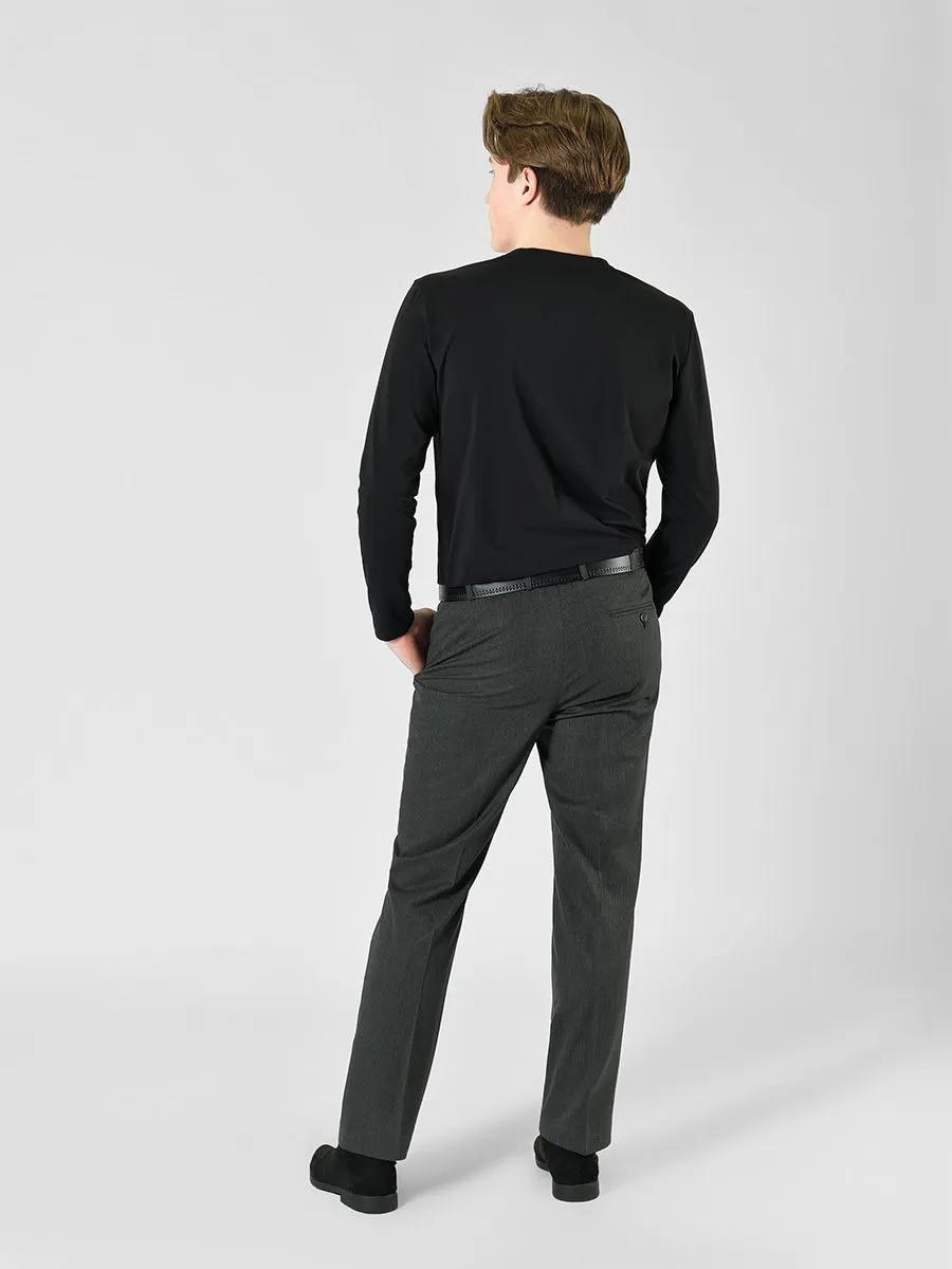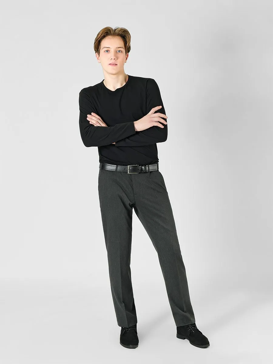 Мужские брюки имеют расширенную размерную сетку до 128 (64) размера. Прямой силуэт и темно-серый цвет с фактурой делают брюки базовым элементом мужского гардероба. С брюками можно создать множество образов- от самых классических с сорочкой и пиджаком, до расслабленных образов с лонгсливом, джемпером или поло.