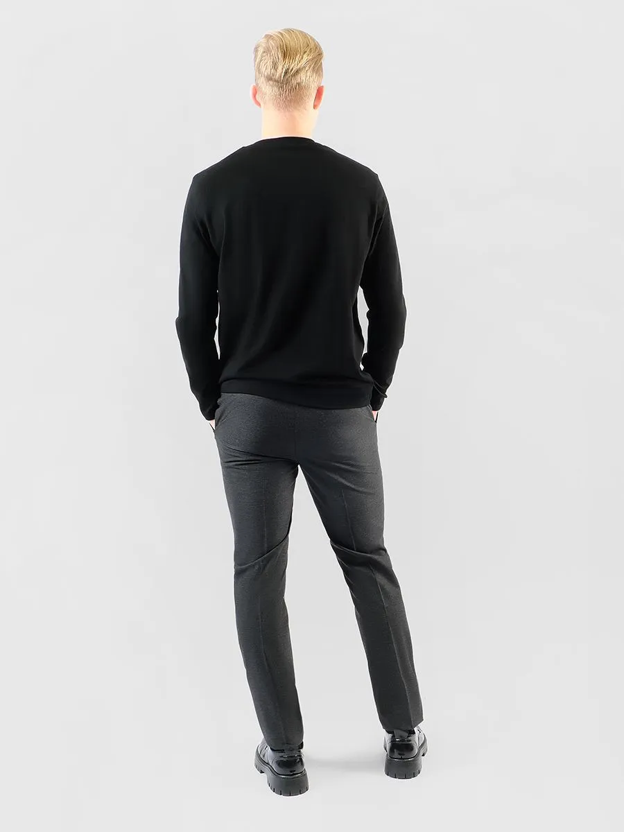 Темно-серые мужские брюки создают образ элегантный и современный, идеально подходящий как для повседневной работы, так и для особых выходов. Их серый цвет, глубокий и насыщенный, позволяет легко сочетать с различными оттенками и стилями одежды. Брюки обладают конструкцией, которая подчеркивает фигуру, а зауженная к низу модель добавляет визуального изящества и стильной остроты. Незаменимы в гардеробе современного мужчины, который стремится быть в центре внимания, сохраняя при этом безупречную репутацию человека с утонченным вкусом.