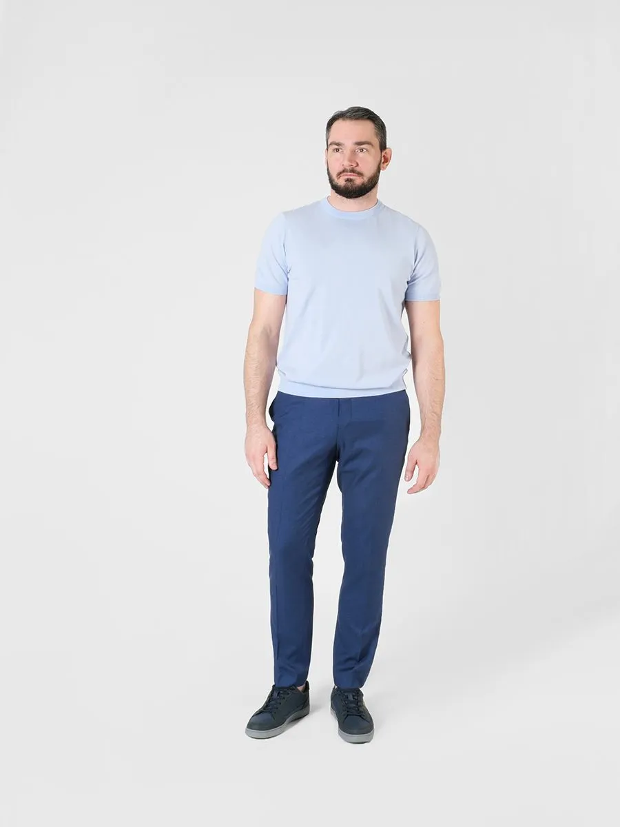 Мужские брюки синего цвета представелны в зауженном к низу силуэте. Уникальность этих брюк заключается в натуральном составе, который включает 18% бамбука и 5% конопли. Такая комбинация материалов не только обеспечивает высокую прочность и долговечность изделия, но и делает его экологичным. Брюки оснащены резинкой, что обеспечивает комфорт и удобство при носке, а стрелки на брючинах визуально удлиняют силуэт. Уникальный орнамент на внутренней отделке подчеркивает индивидуальность и оригинальность брюк, придавая уверенности мужчине. Носить эти брюки - значит выделиться из толпы, подчеркнуть свою утонченность и стиль. Независимо от того, куда вы направляетесь - работа, встреча, вечеринка, эти брюки будут незаменимым предметом гардероба. Высокое качество и неповторимый дизайн - вот что делает эти брюки по-настоящему уникальными.
