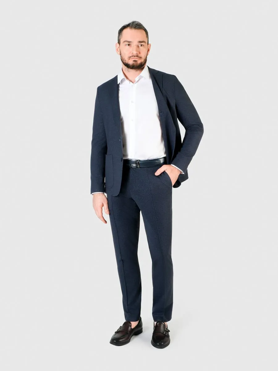 Брюки мужские синие являются идеальным выбором для мужчин, которые стремятся выглядеть стильно и изысканно в любых ситуациях. Уникальный микродизайн на ткани придает этой модели привлекательность. Брюки выполнены в узком силуэте, что позволяет создавать модный и современный образ, который безупречно подчеркивает фигуру мужчины. Прошитые стрелки на брючинах добавляют нотки классики и делают образ более формальным. Пояс на резнике позволяет обеспечить оптимальную посадку и фиксацию на талии, что в свою очередь обеспечивает максимальный комфорт и свободу движений. Это особенно важно, если вы проводите много времени в движении или находитесь в активной деятельности. Дополнительно можно приобрести к брюкам пиджак из такой же ткани JA24108-SL. Это сочетание поможет выглядеть цельно и стильно, подчеркивая ваш безупречный вкус в одежде.