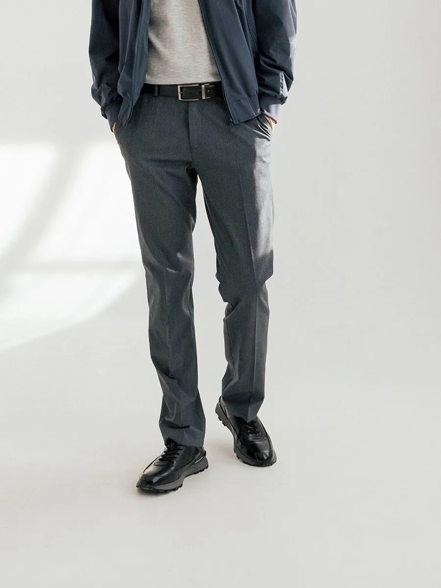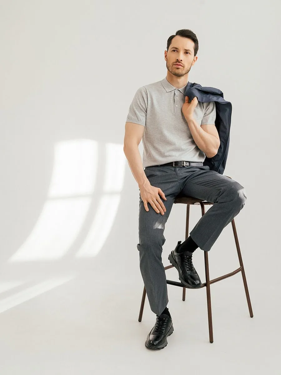 Популярные и трендовые темно-серые брюки сочетаются с различным верхом и обувью, создавая стильные и модные образы для любой ситуации.Особенностью этой модели является пояс на резинке, что позволяет легко и комфортно носить их на протяжении всего дня, не ощущая дискомфорт. При этом пояс оснащен шлевками - можно дополнить образ подходящим аксессуаром. Сочетая в себе комфорт, стиль и уникальный дизайн, эти мужские брюки станут незаменимым элементом гардероба каждого модного мужчины. В них можно чувствовать себя уверенно, стильно и современно в любой ситуации.