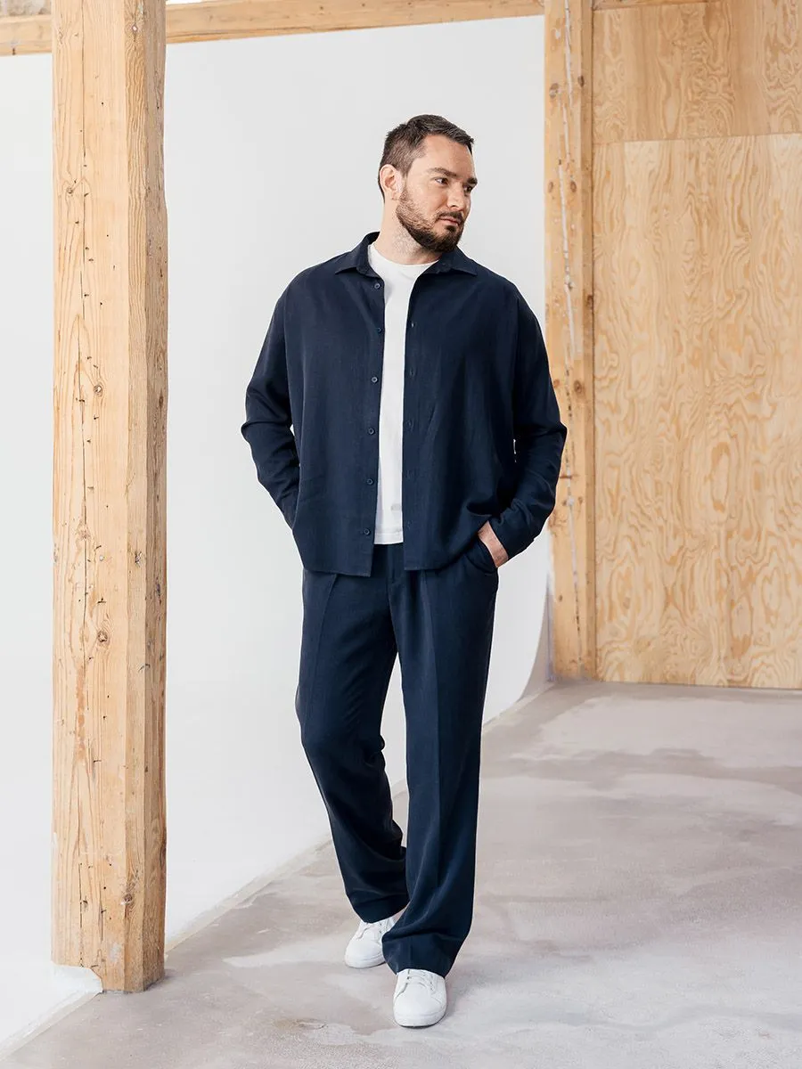 Мужские классические темно-синие брюки с широким силуэтом – идеальный выбор для создания стильного образа. Они позволяют подчеркнуть мужественность и элегантность одновременно. Комбинировать их можно с различными верхом, но особенно выгодно будут смотреться с рубашкой оверсайз JA24133-O, выполненной из такой же ткани. Это сочетание создаст трендовый и ультрамодный образ. Брюки удобны в носке и обеспечивают свободу движений благодаря своему расслабленному силуэту oversize. Они идеально подойдут для выхода на прогулку или встречи с друзьями. Новая модель этих брюк представляет собой комбинацию классического стиля и современных тенденций, что придает всему образу особую привлекательность. Сочетание темно-синего и широкого силуэта делает эти брюки не только стильными, но и универсальными – они прекрасно сочетаются с различным верхом и обувью, что позволяет создавать множество различных образов.