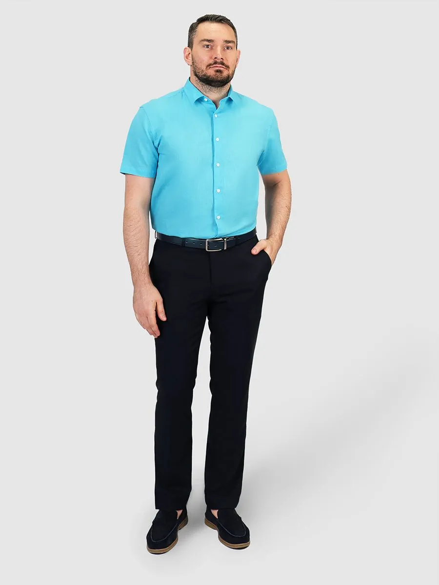 Мужские брюки темно-синего цвета – это краеугольный камень гардероба современного мужчины. Их универсальность и элегантность позволяют создавать множество образов, от деловых до непринужденных. Прямой крой обеспечивает комфорт и свободу движений, а классический силуэт остается актуальным вне времени. Фактурный однотонный рисунок добавляет глубину и интерес ткани, не перегружая образ. Он создает деликатный визуальный эффект, который придает брюкам изысканность и подчеркивает внимание к деталям.