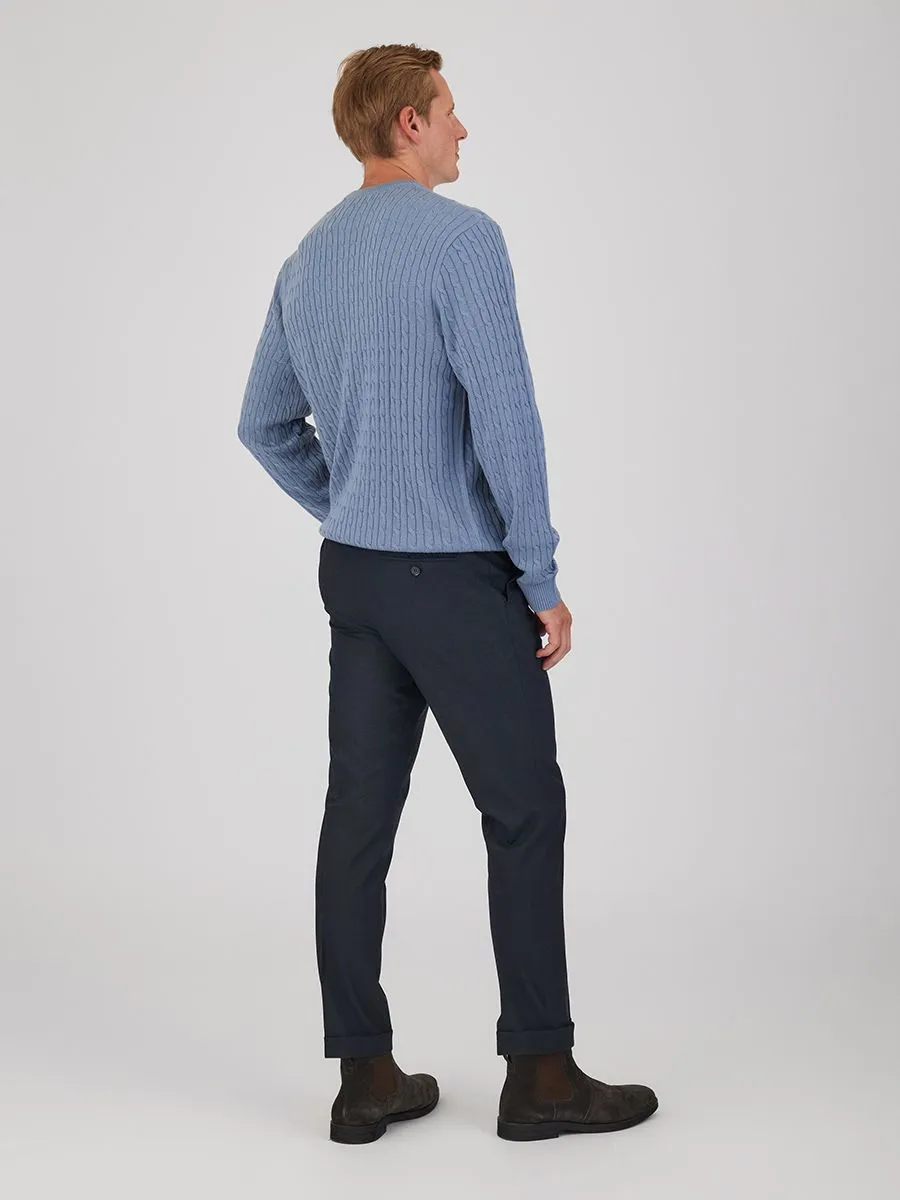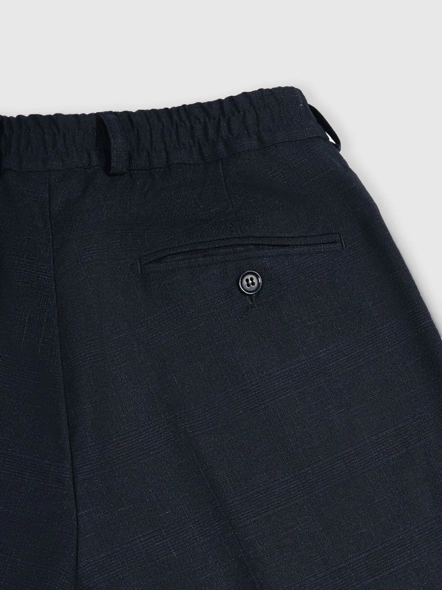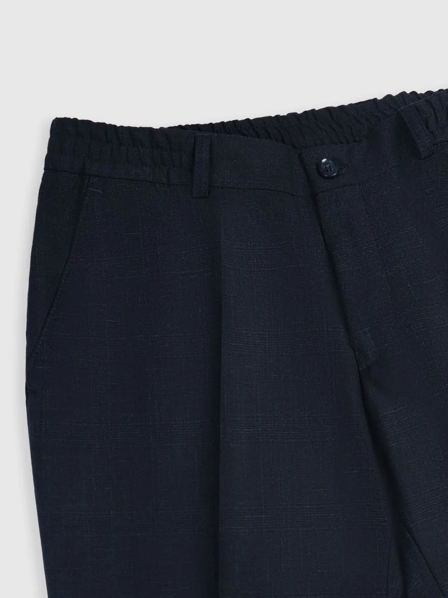Мужские темно-синие брюки в неконтрастную клетку создают элегантный и сдержанный образ. Манжеты по низу брюк добавляют современный акцент и подчеркивают непринужденность стиля. Идеально сочетаются с бомбером BM25165, формируя гармоничный и актуальный комплект для любого случая.