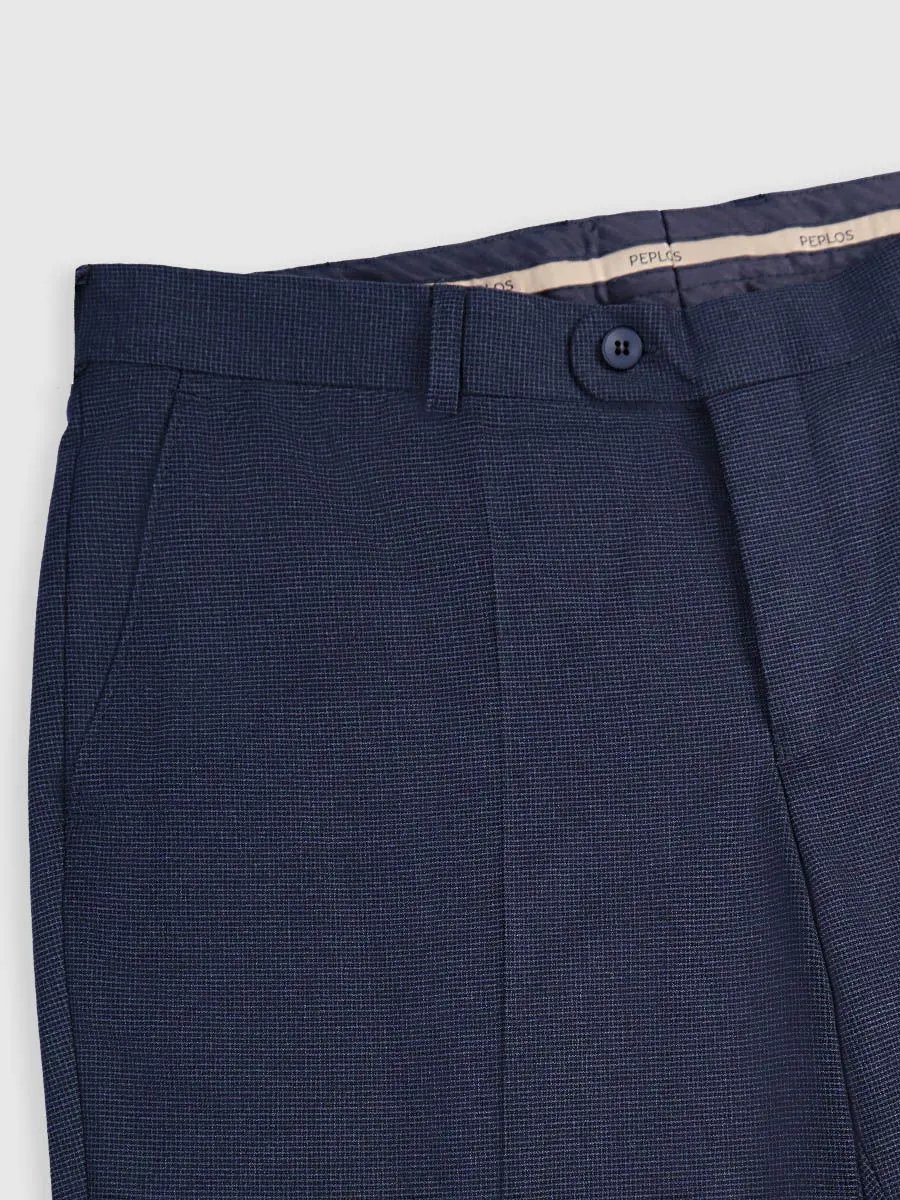 Представляем вашему вниманию темно-синие брюки с изысканным микродизайном. Эти элегантные брюки прямого кроя, слегка зауженные книзу, искусно дополнены стрелками, создающими четкий и утонченный силуэт. Особое внимание уделено комфорту – они имеют +2 см в талии, гарантируя идеальную посадку и свободу движений. Эти брюки станут безупречным дополнением как к деловому, так и к повседневному гардеробу.