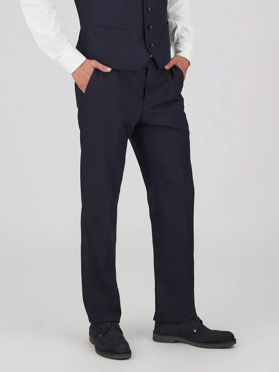Мужские темно-синие брюки из базовой коллекции – это воплощение элегантной сдержанности и практичности. Четкие стрелки подчеркивают строгий силуэт, высокая посадка оспечивает комфорт при ношении. Пояс на корсажной ленте гарантирует надежную фиксацию. Дополните образ стильным жилетом V26002 из идентичной ткани для создания завершенного и гармоничного образа.