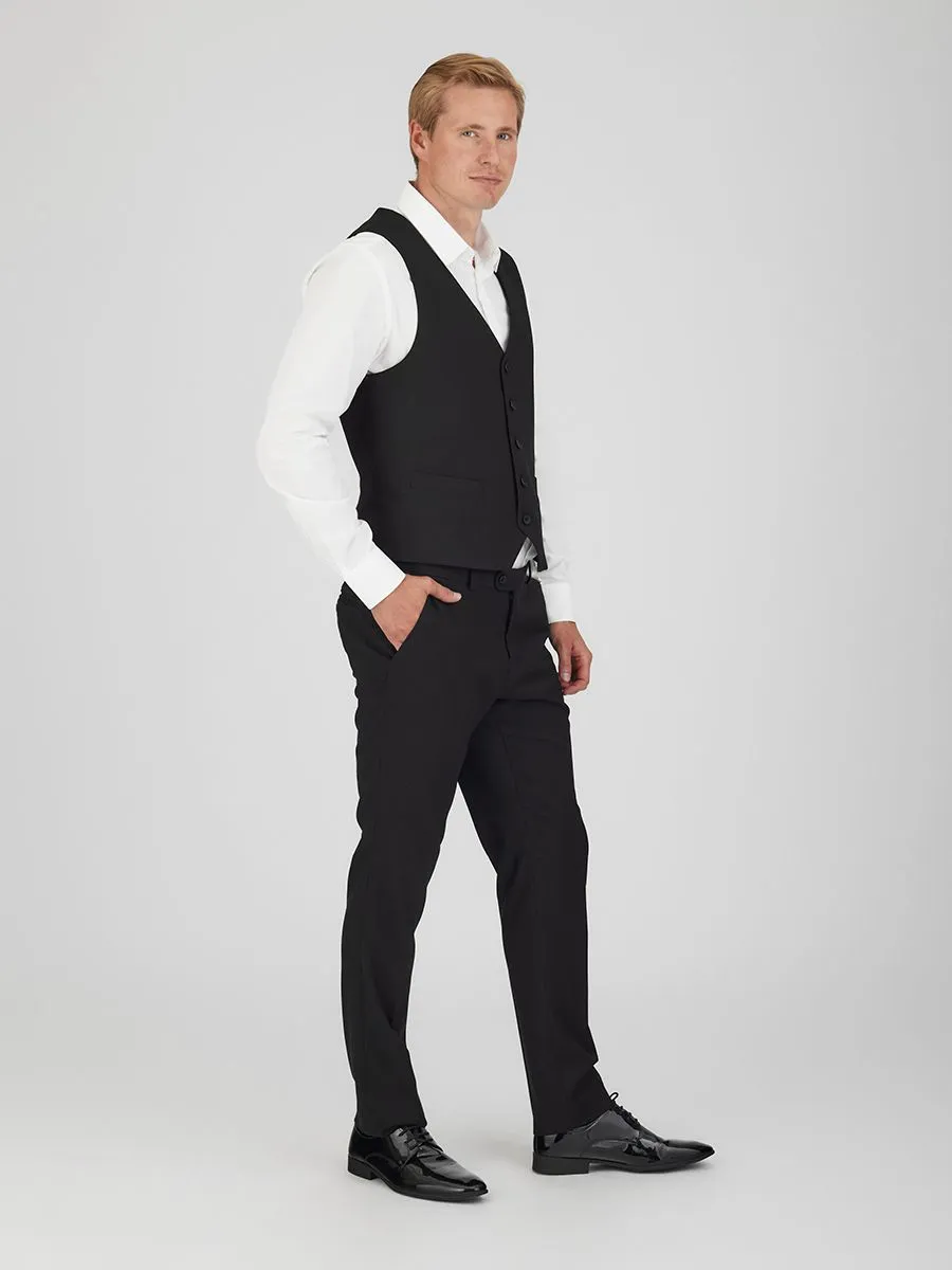 Идеальное воплощение элегантности и комфорта: черные мужские брюки, сдержанная гладь которых подчеркивает безупречный вкус. Классический прямой силуэт формирует четкую линию, а безукоризненно отутюженные стрелки добавляют образу строгости и делового шарма. Тщательно выполненная подкладка обеспечивает приятное ощущение на коже и идеальную посадку. Завершает образ пояс на корсажной ленте, гарантирующий надежную фиксацию и безупречный внешний вид.