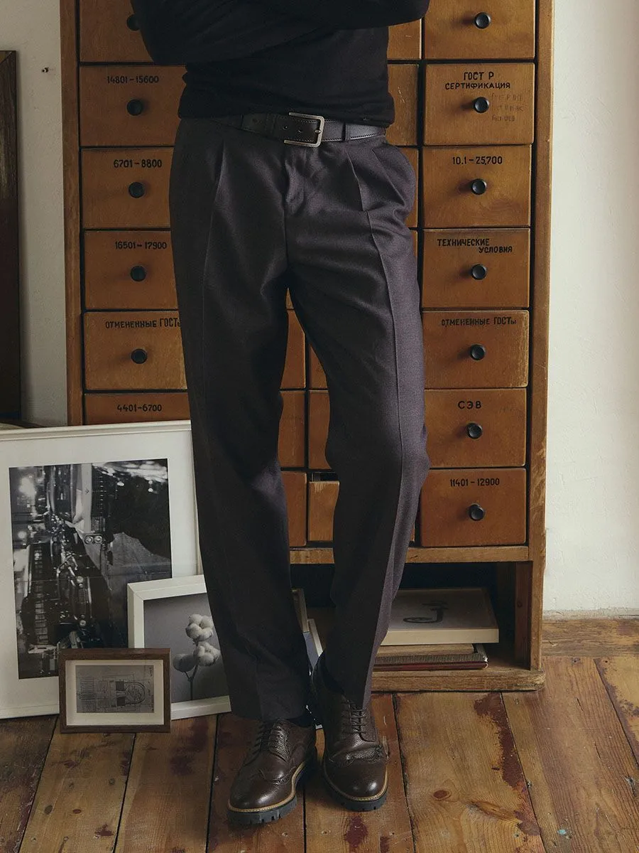 Мужские темно-серые брюки модель П-230 – это современная интерпретация классического стиля. Модель отличается двумя защипами спереди, обеспечивающими свободу в области бедер, и заниженной линией слонки для комфортной посадки. Брюки дополнены корсажем и отрезным поясом с восемью шлевками, что гарантирует надежную фиксацию. Силуэт брюк – зауженный к низу, с шириной штанины внизу 20 см, создающий элегантный и современный образ.