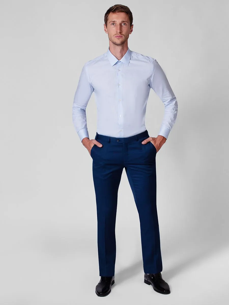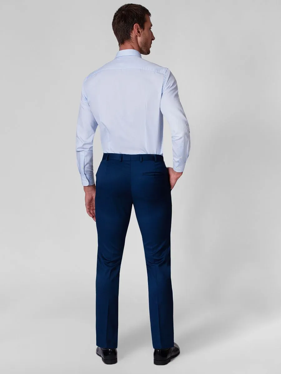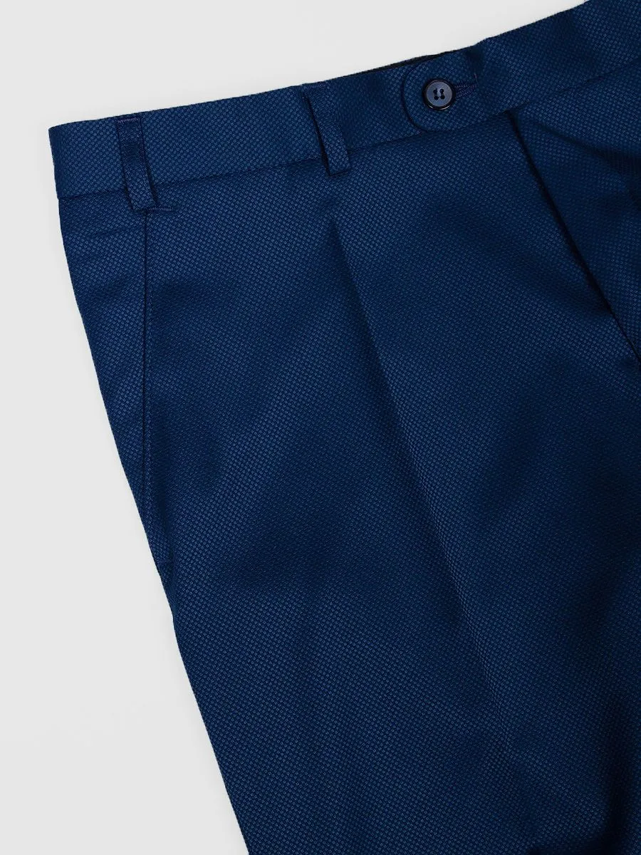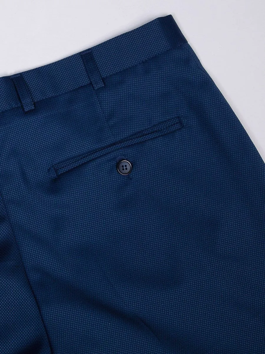 Стильные праздничные брюки Peplos сделают образ любого мужчины современным и привлекательным. Модель брюк выполнена из яркой ткани насыщенного синего цвета, которая также украшена микродизайном, придающим фактурность и объем изделию. Передние части половин брюк с боковыми карманами с подрезными бочками. Края карманов имеют отделочную строчку нитками в цвет ткани верха. В составе изделия содержится 84% полиэстера, 13% вискозы и 3% спандекса.