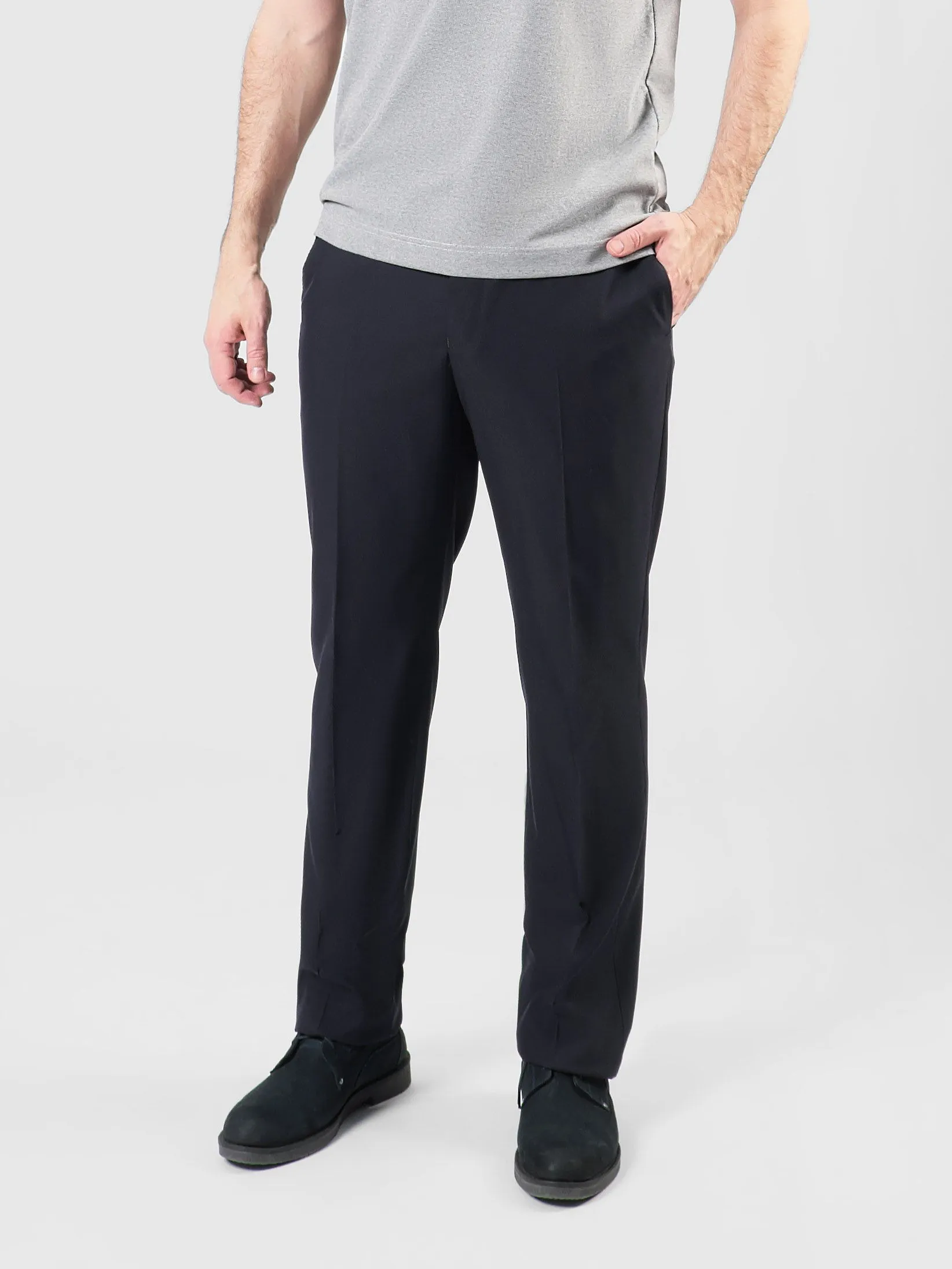 Базовые мужские брюки темно-синего оттенка выполнены в классической прямой модели, которая станет идеальным дополнением к вашему повседневному гардеробу. Дополнительный объем в талии - 2 см, обеспечивает комфортную посадку независимо от обстоятельств. Брюки отличаются универсальностью, благодаря чему легко сочетаются как с официальной рубашкой для деловых встреч, так и с легкой футболкой для прогулок.