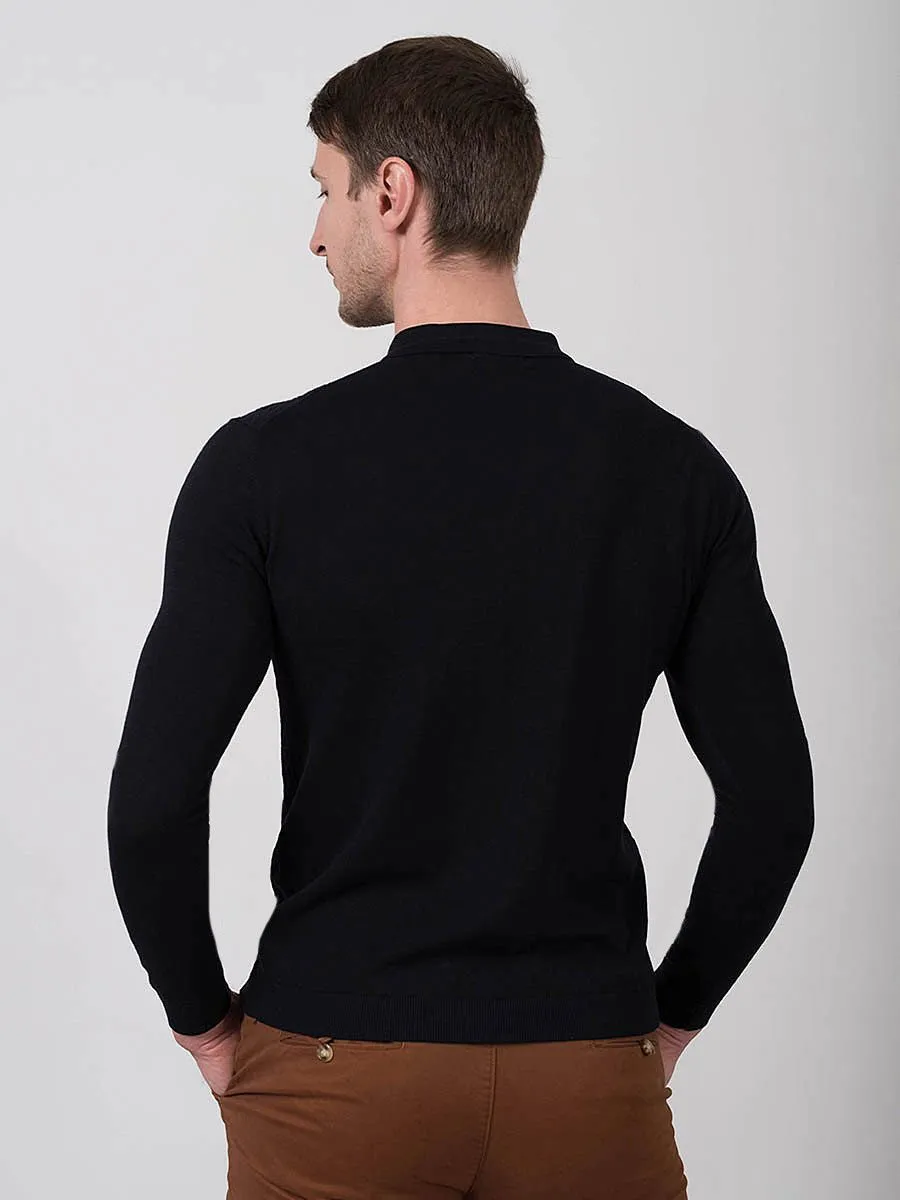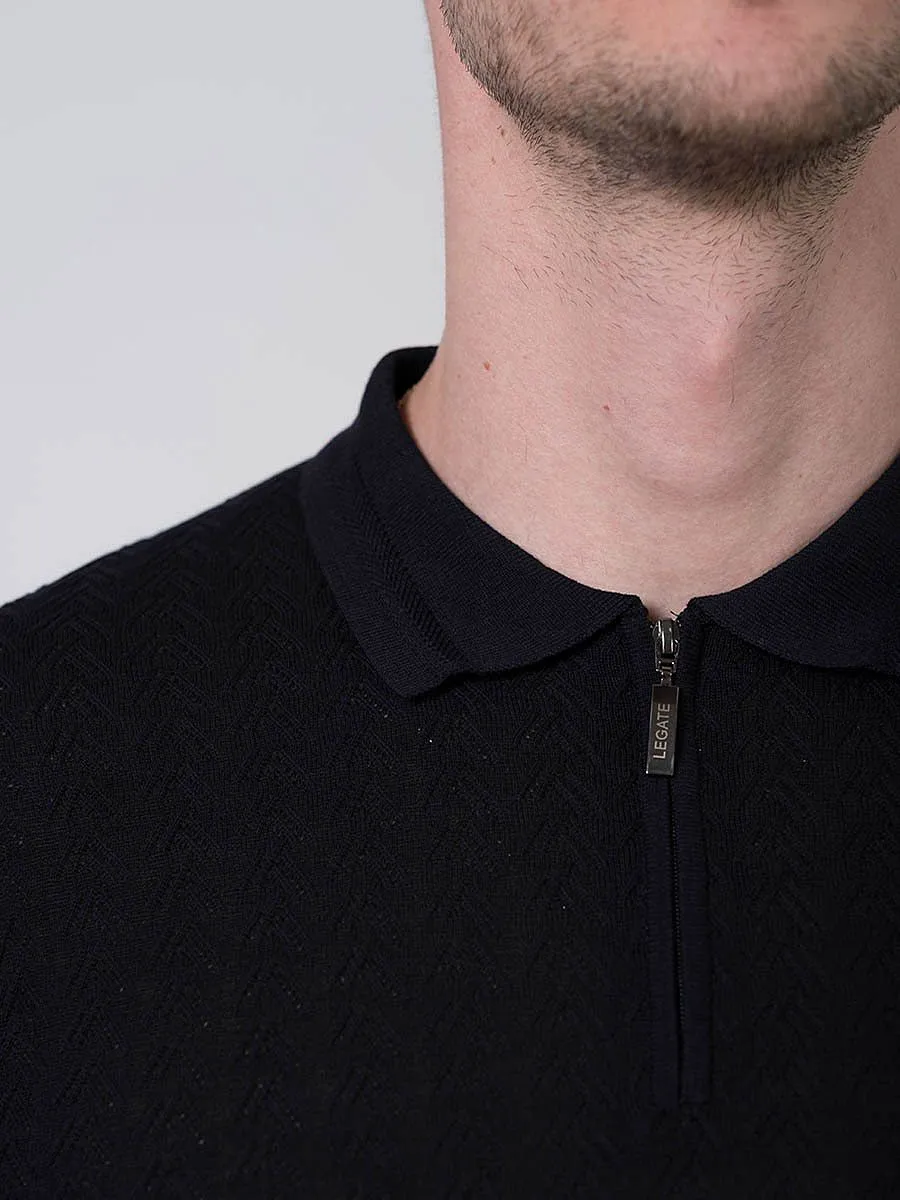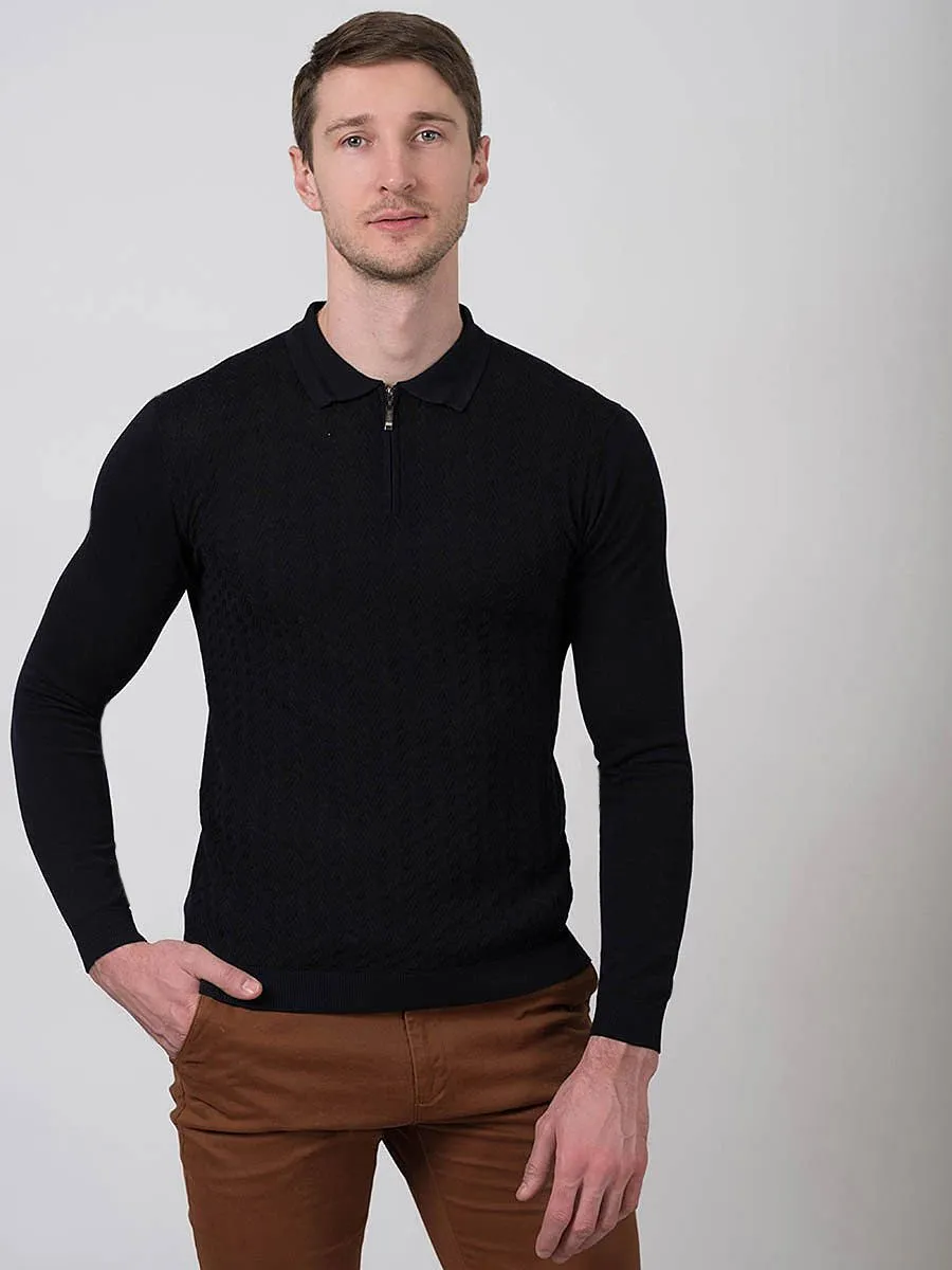 Стильный темно-синий джемпер-поло премиальной линейки Majestic Legate выполнен из высококачественного хлопка, прошедшего мерсеризацию, благодаря чему джемпер не пилингуется, не подвержен усадке и обладает повышенной прочностью нитей. Джемпер идеально садится по фигуре, чему способствует эластичные свойства трикотажного полотна, а также резинка на манжетах и талии. Джемпер украшен аккуратным отложным воротником, молнией и рисунком в виде классического растительного жаккарда.