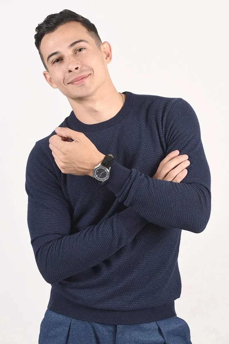 Темно-синий джемпер с круглым воротом, хлопок 100%