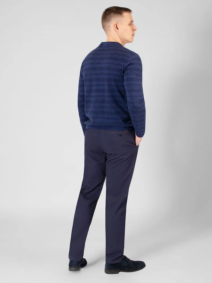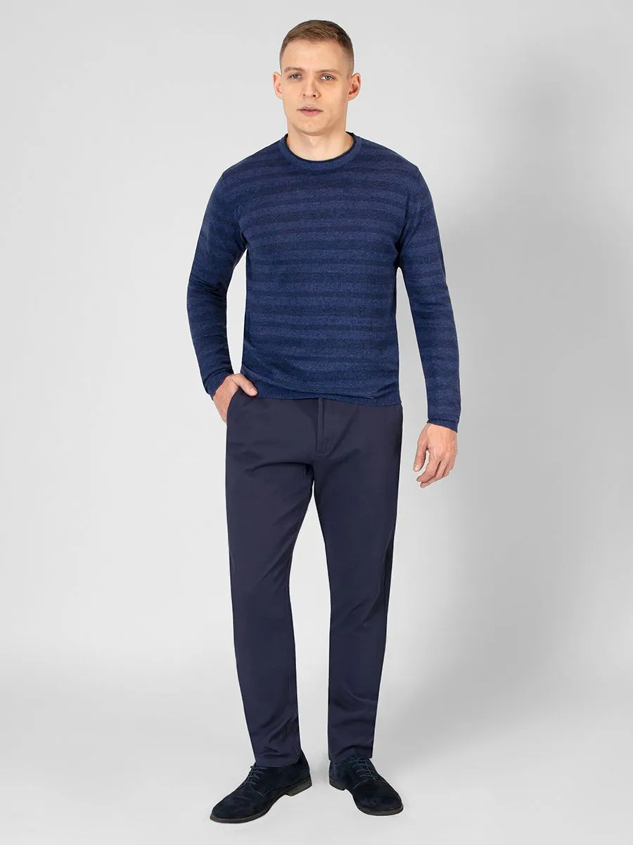 Хлопковые брюки в стиле Casual будет комфортно носить в любое время года. Входящий в состав спандекс делает брюки более эластичными, а хлопок позволяет коже дышать. У брюк интересный цвет- синий с фиолетовым подтоном, с таким цветом можно создать множество привлекательных образов.