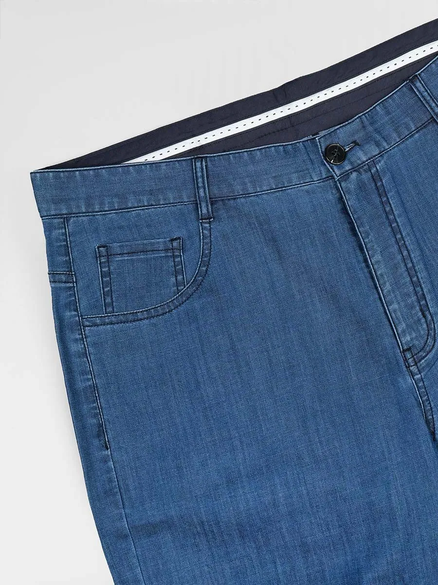 Брюки похожие на джинсы или летний вариант джинсов - так можно описать данную модель. Внешне брюки действительно напоминают жинсы, и иеют такие же классические кджинсовые арманы, Цвет, фактура, хлопковый состав ткани также нсхожи сдинсы.амиНо главное отличие в том, что ткань намного тоньше и мягче. В состав добавлен тенсел - это экологичный материал, по своим свойствам напоминающий шелк и вырабатываемый из волокон эвкалиптового дерева. Ткань, содержащая в своем составе тенсел, после стирок не линяет и не выгорает. В итоге брюки получились очень легкими, мягкими, эластичными и конечно, дышащими. Поэтому для летнего жаркого дня - это отличная альтернатива плотным джинсам.