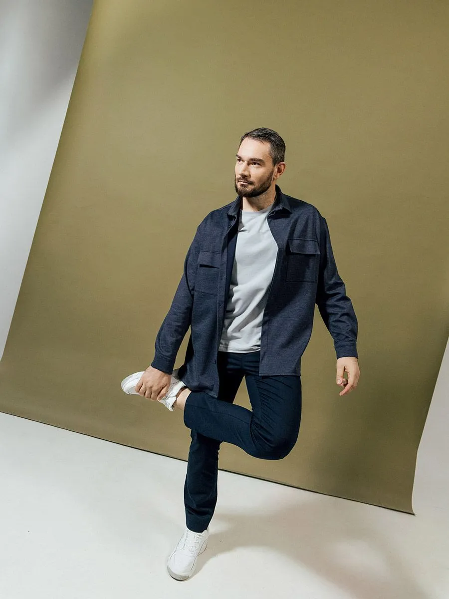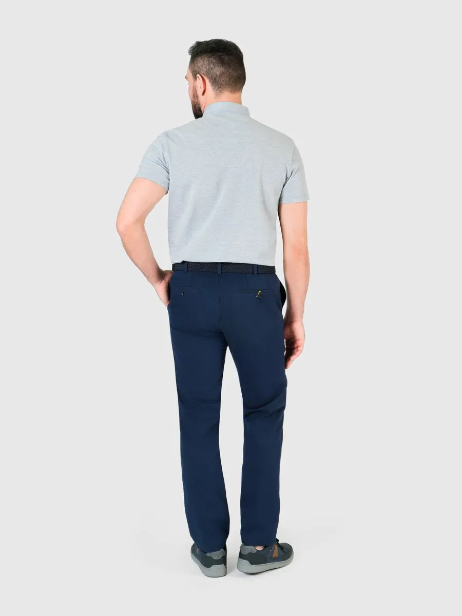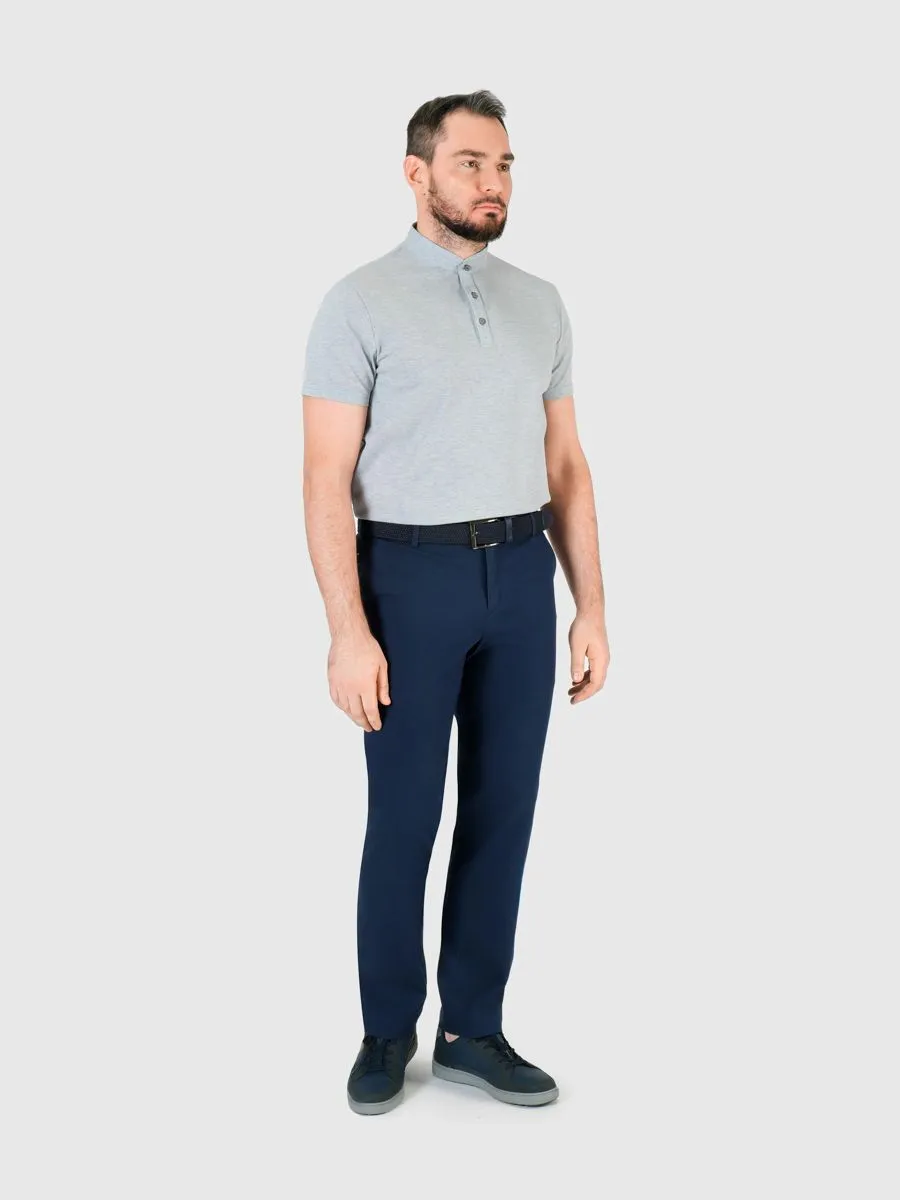 Мужские брюки casual в синем оттенке с прямым силуэтом и комфортной посадкой, доступны в размерах с 50 по 62. Брюки изготовлены из ткани с меланжевым эффектом, в составе которой 75% хлопка, 23% полиэстера и 2% эластана. Ткань прочная и дышащая, приятная в носке. Эти брюки станут отличным пополнение гардероба современного мужчины, обеспечат комфорт и элегантность и придадут вашему образу непринужденности.