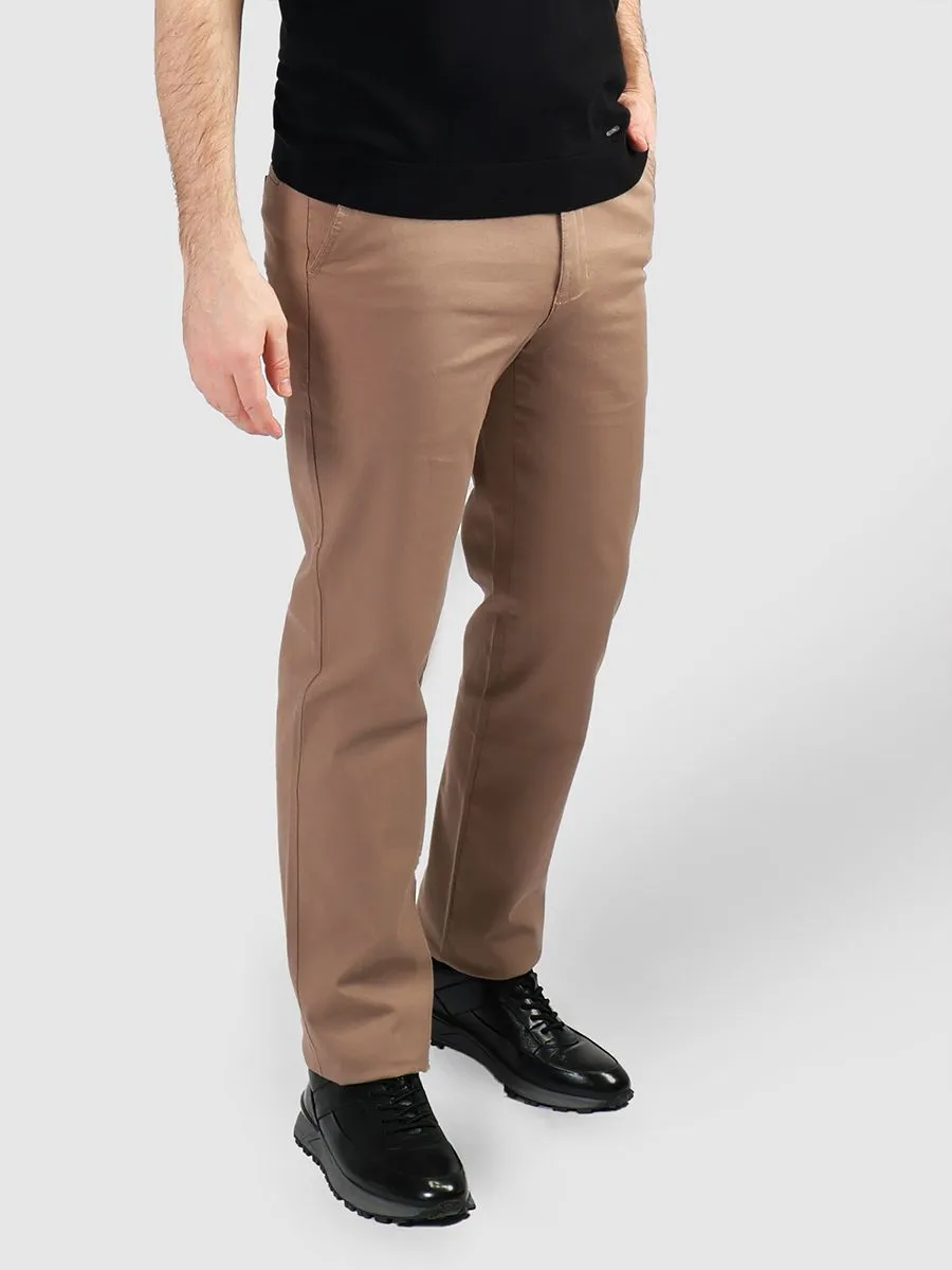 Эти брюки – идеальный выбор для тех, кто ценит комфорт и стиль в повседневной одежде. Натуральный хлопок обеспечивает воздухопроницаемость и приятное ощущение на коже, а добавление эластана гарантирует свободу движений и отличную посадку по фигуре. Бежевый цвет делает их универсальными, позволяя легко сочетать с различным верхом и создавать разнообразные образы.