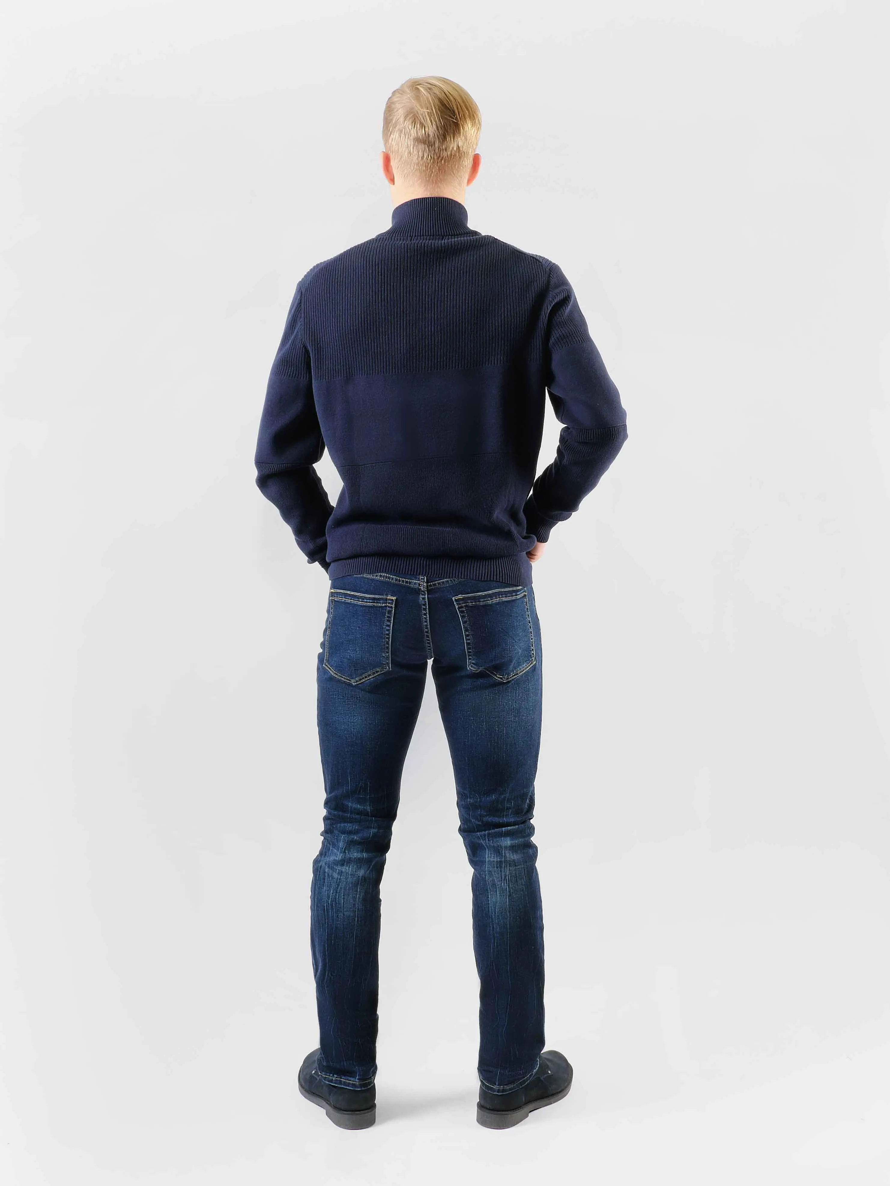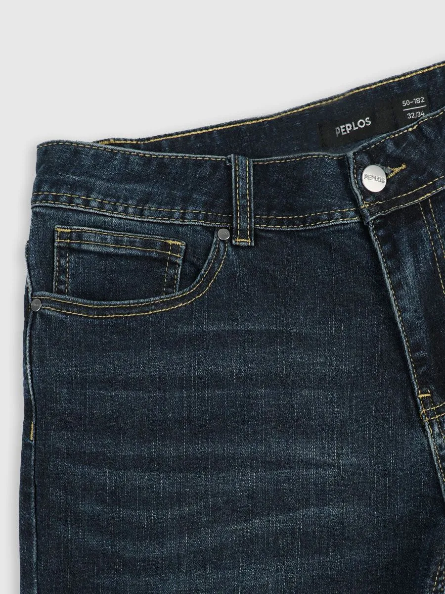 Мужские джинсы – неотъемлемый элемент любого гардероба.На штанинах имеются локальные осветления, создающими стильный акцент на ткани и придающими ей неповторимый характер. В сочетании с аккуратными стежками, прошитыми коричневыми нитками, они подчеркивают внимание к деталям и тонкое мастерство пошива. Глубокий синий цвет подчеркивает силуэт слим, который выгодно облегает контуры тела, создавая элегантный и стройный образ. Этот предмет одежды легко сочетать с различной обувью и верхней одеждой, позволяя каждому мужчине выразить свой уникальный стиль с уверенностью и комфортом.