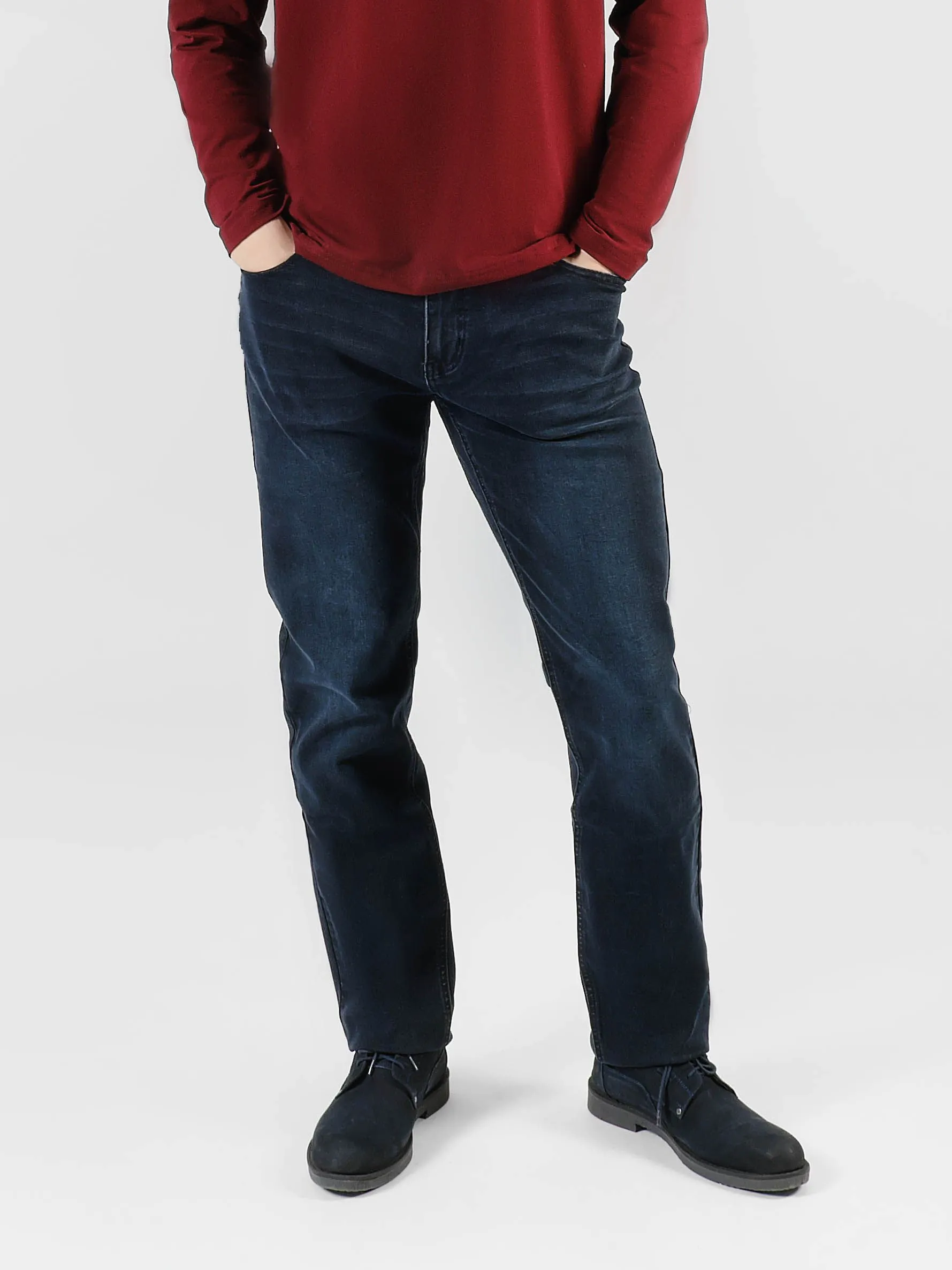 Тёмно-синие мужские джинсы с лёгкими локальными осветлениями, нитки в тон ткани, силуэт — прямой regular. Эти джинсы воплощают в себе элегантную простоту и практичность, которые так ценят мужчины. Их тёмно-синий оттенок универсален и подходит для любого случая, будь то повседневные прогулки по городу или деловые встречи. Лёгкие осветления на ткани придают изделию лёгкий налёт небрежной стильности, делая образ более живым и динамичным. Нитки, подобранные в тон ткани, подчёркивают сдержанность и лаконичность дизайна, создавая гармоничный внешний вид. Силуэт джинсов — прямой regular — обеспечивает комфорт, не ограничивая движения, и идеальную посадку на любой фигуре. Этот предмет гардероба станет надежной основой для создания самых разнообразных ансамблей, оставаясь всегда актуальным и уместным во всех сферах жизни.