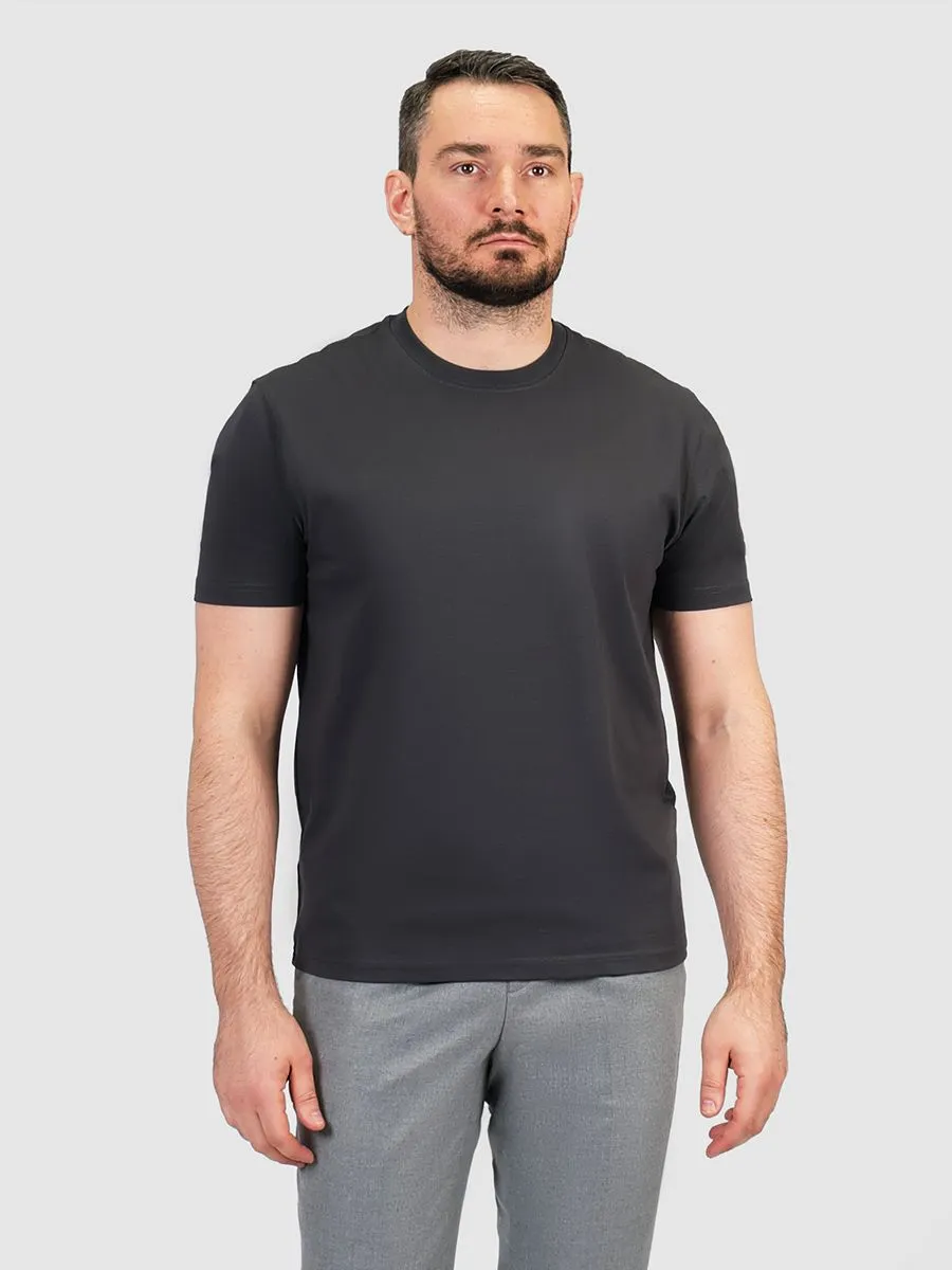 Эта футболка – незаменимый элемент гардероба современного мужчины, ценящего комфорт и универсальность. Её можно носить с чем угодно, создавая как строгие, так и расслабленные образы. Серый цвет, в свою очередь, – это идеальный холст для любых экспериментов со стилем.Благодаря своему лаконичному дизайну, эта футболка легко вписывается в любой дресс-код, от повседневного до делового. Она отлично сочетается с джинсами, чиносами, шортами и даже классическими брюками. Нейтральный серый оттенок позволяет создавать бесконечное количество цветовых комбинаций, не перегружая образ.Узкая горловина из основного материала придает футболке аккуратный и завершенный вид. Кроме того, такая горловина прекрасно смотрится под пиджаком или кардиганом, не создавая лишнего объема и дискомфорта.