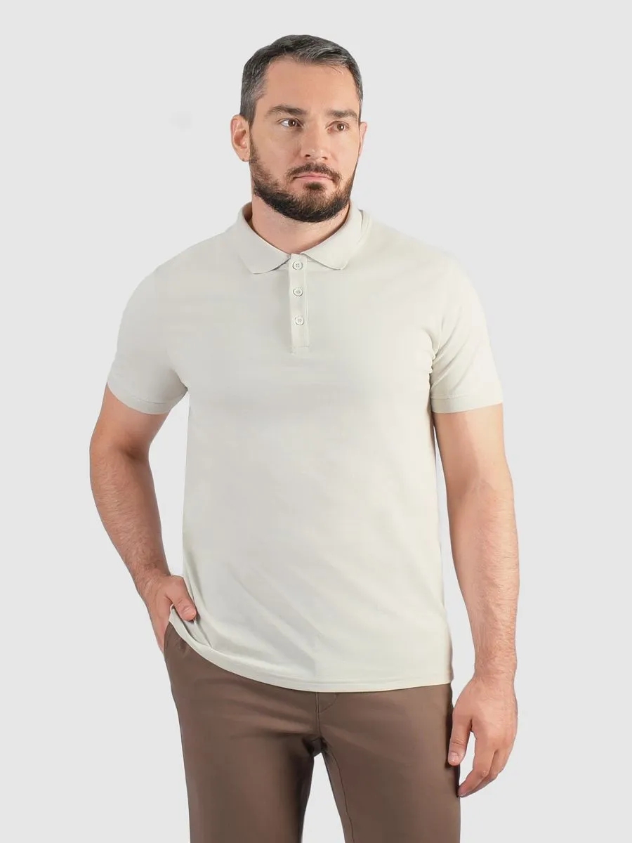 Мужское поло в светло-молочном оттенке. Ворот на пуговицах придаёт изделию стильный и современный вид, позволяя комбинировать его как с брючными костюмами, так и с джинсами или повседневными брюками.Светло-молочный оттенок является универсальным цветом, который легко сочетается с другими элементами гардероба, создавая гармоничные и модные образы. Это позволяет каждому мужчине чувствовать себя уверенно и привлекательно, независимо от ситуации. Такое поло станет отличным дополнением к любому стилю, будь то классический, спортивный или кэжуал.