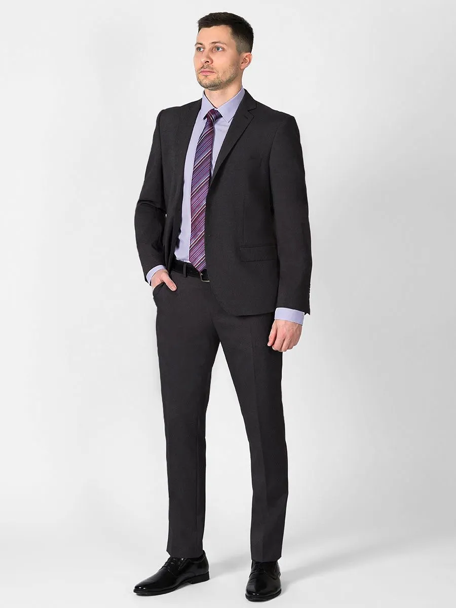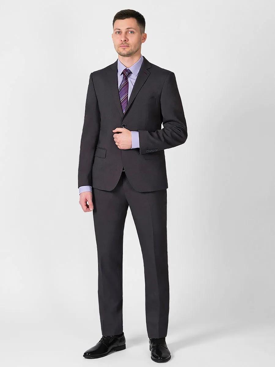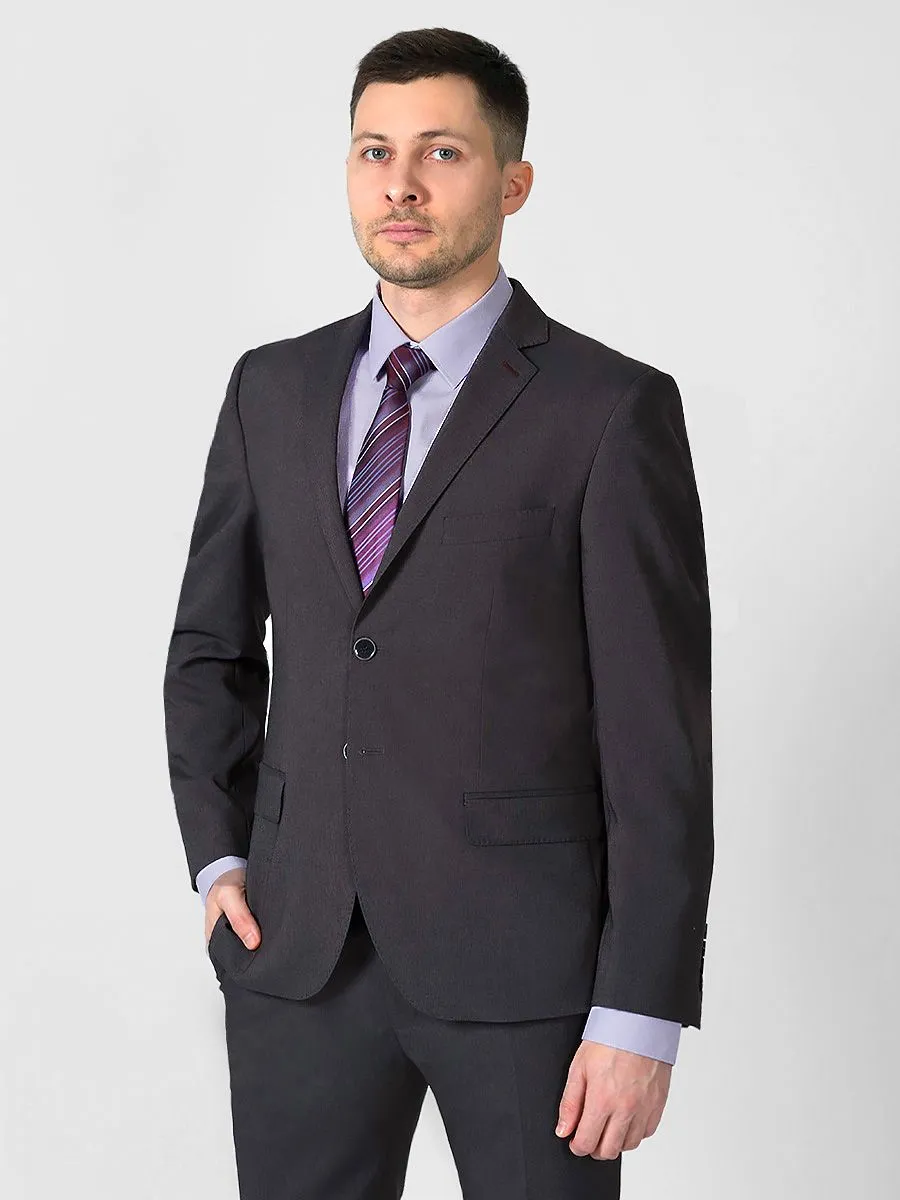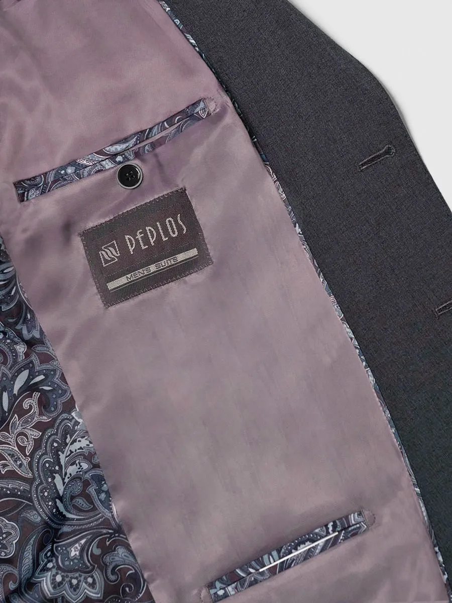 Темно-серый костюм Peplos в приталенном силуэте позволяет выглядеть презентабельно в самые важные моменты. Тонкая клетка и объемная фактура ткани — не угасающий тренд деловых костюмов. На пиджаке расположены внутренние карманы с клапанами и не бросающаяся в глаза листочка. Черные пуговицы на линии борта и шлице рукавов придают пикантности к образу. Кроме того, отличительной чертой костюма является растительный принт и перламутровый цвет на подкладе. Слегка зауженный крой брюк, подойдет мужчинам среднего телосложения. Одинаковое соотношение вискозы и полиэстера в составе придают надежность и неприхотливость этому изделию. Присутствующий в материал спандекс прибавляет ткани эластичности и прочности.