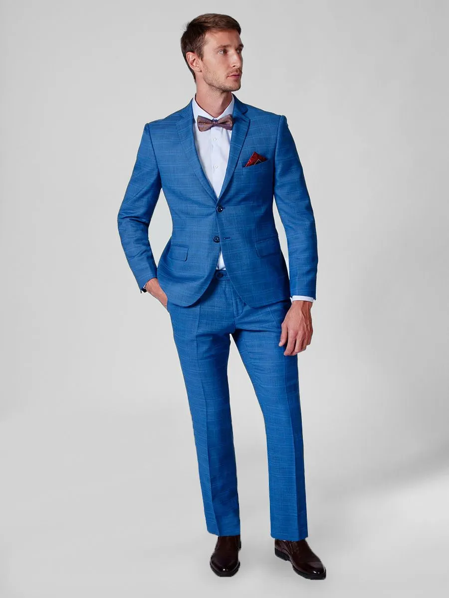 Мужской голубой костюм Peplos идеально подходит для летних праздничных мероприятий, свадеб и корпаративов. Добавив в образ бабочку и нагрудный платок, мужчина смотрится ещё более элегантнее. Приталенный силуэт изделия подчеркивает фигуру владельца и стройнит тело. Гладкая и шелковистая подкладка пиджака добавляет изделию комфорт и приятна телу во время носки. Благодаря содержанию эластичных волокон спандекса в ткани можно активно двигаться и не бояться сильной деформации изделия.