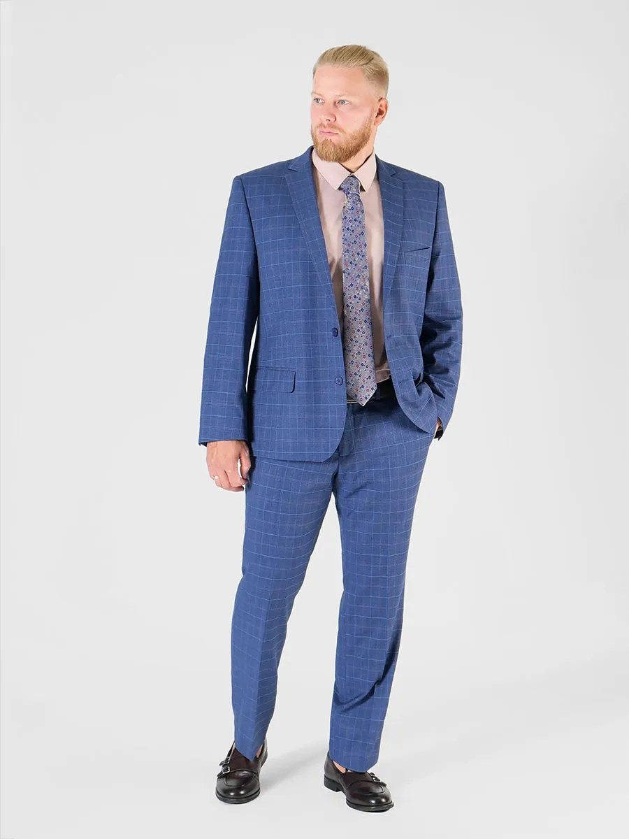 Яркий синий костюм в клетку украсит любой праздник, и конечно, его владельца. Клетка состоит из ярких голубых линий и приглушенных красных. С костюмом будут отлично сочетаться сорочки различных розово-пудровых оттенков, например, SHB034-SL. Классический силуэт костюма дает наибольшую свободу облегания, поэтому в нем вам будет удобней двигаться и сидеть, что так важно на любом мероприятии.