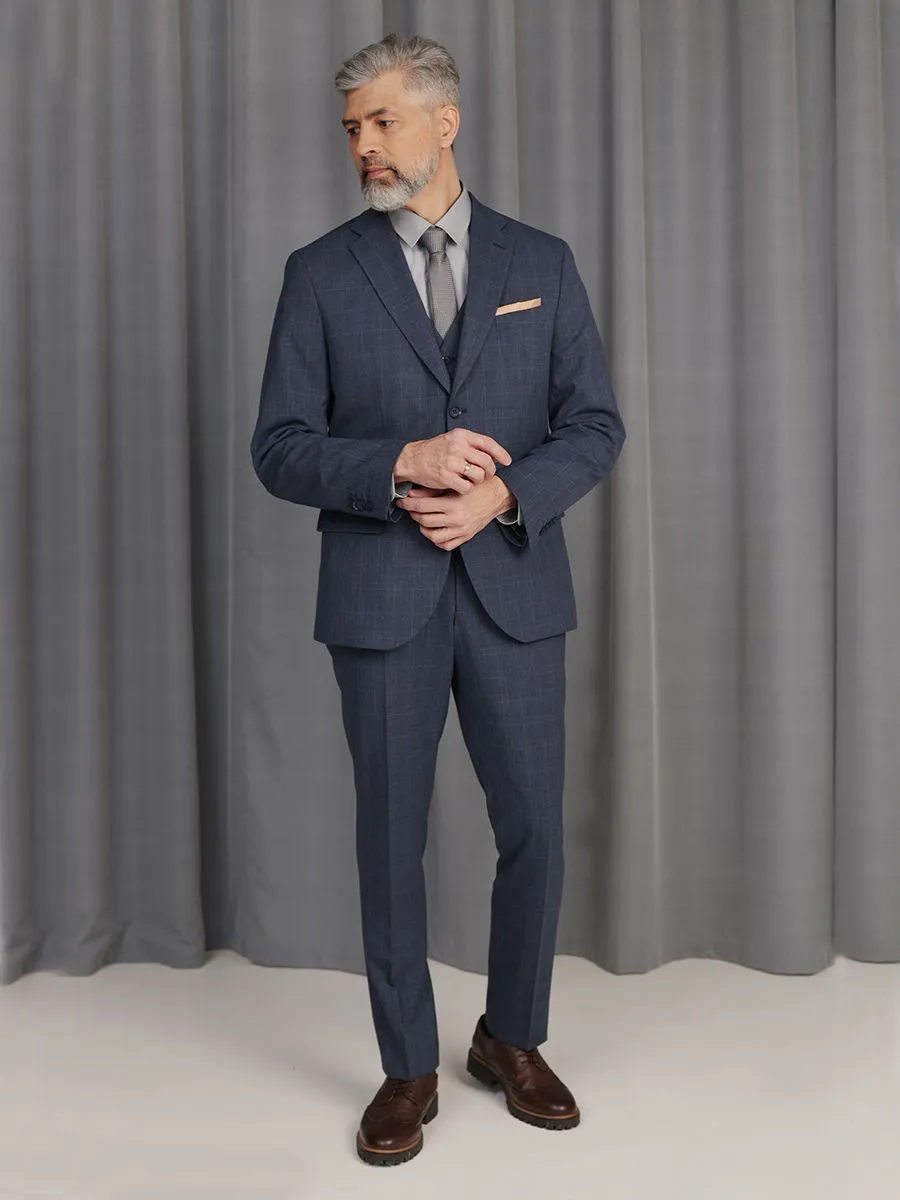 Серо-голубой костюм в элегантную двойную клетку со светлой подкладкой. Такой костюм хорошо подойдет для торжественных мероприятий, будь то свадьба или выпускной. Костюм можно дополнить жилетом V25153-004 создав костюм-тройку. В составке костюма двойки пиджак, выполненный в новой модели с современным плечом, и зауженные брюки на комфортной резинке на талии.