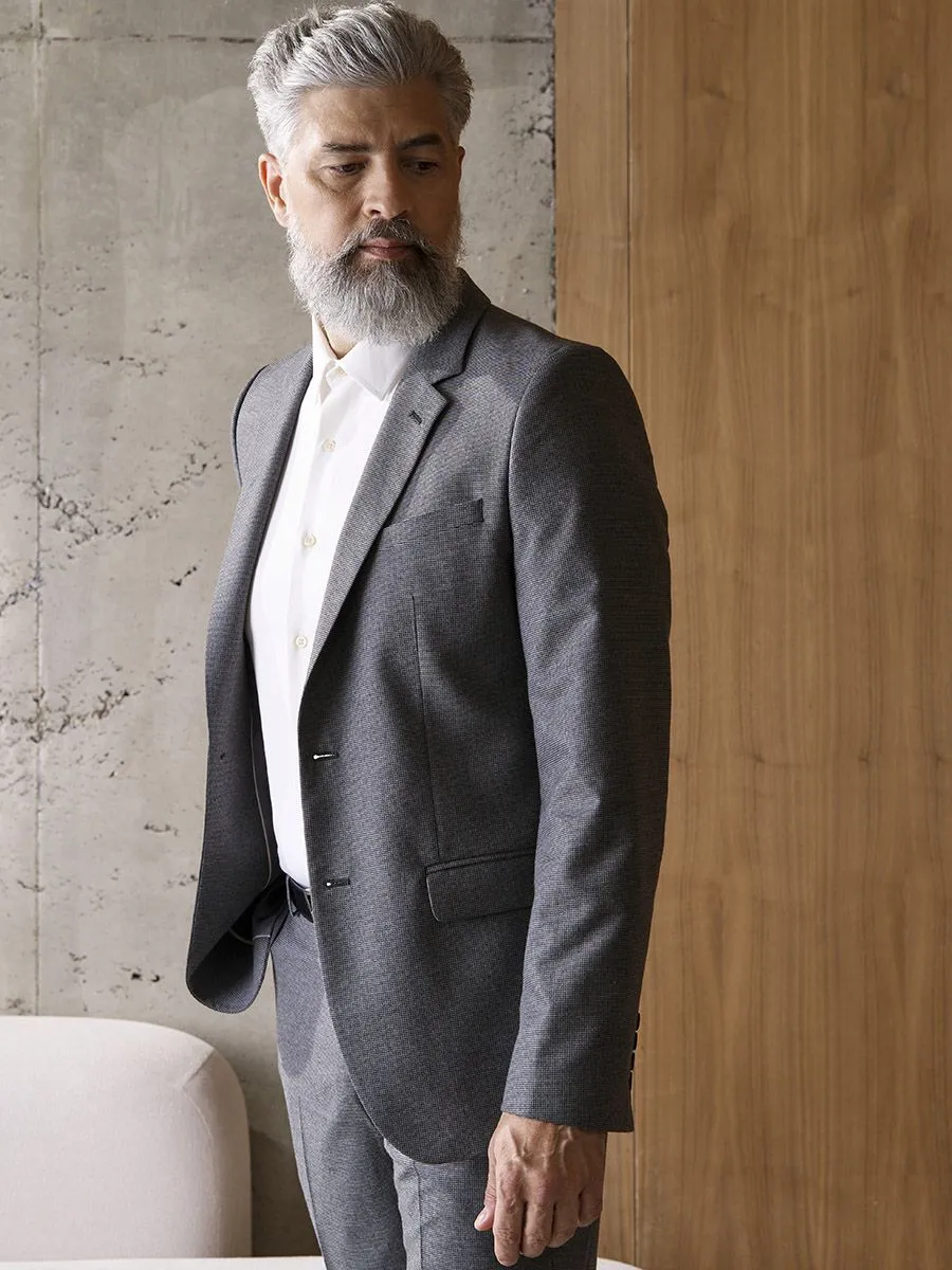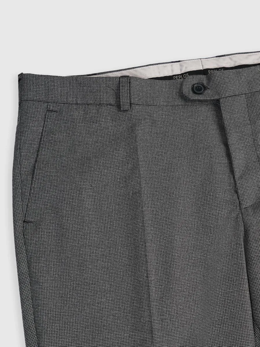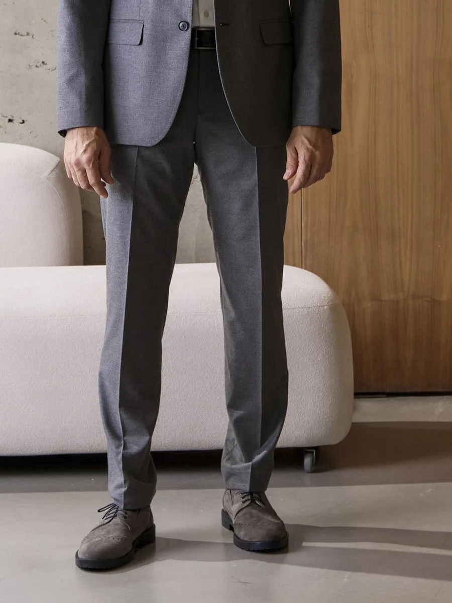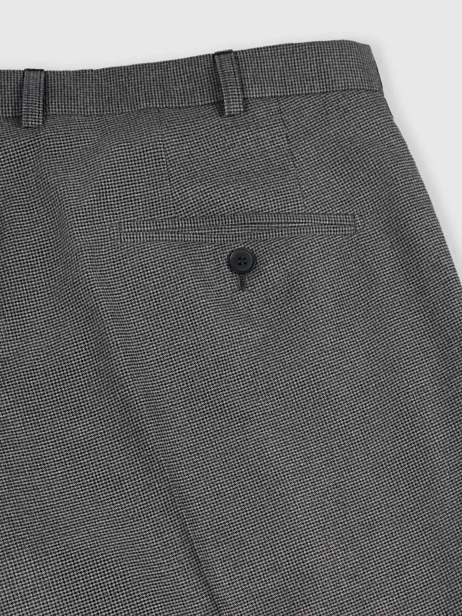 Сдержанная элегантность, воплощенная в сером мужском костюме, наполнена лаконичностью и изысканностью. Мелкий орнамент «гусиная лапка» придает ткани неповторимую фактуру и глубину. Классический крой пиджака с безупречным плечом и одной шлицей подчеркивает мужественность силуэта.Мужские брюки со стрелками, с высокой посадкой на талии и современным зауженным силуэтом создают гармоничный и стильный образ. Функциональные боковые карманы с подрезным бочком и лаконичный задний карман на пуговице добавляют практичности.Внутренняя подкладка брюк, пояс на корсажной ленте и отделочная тесьма по низу свидетельствуют о внимании к деталям и высоком качестве исполнения. Этот костюм – идеальный выбор для тех, кто ценит комфорт, безупречный стиль и уверенность в каждом движении.
