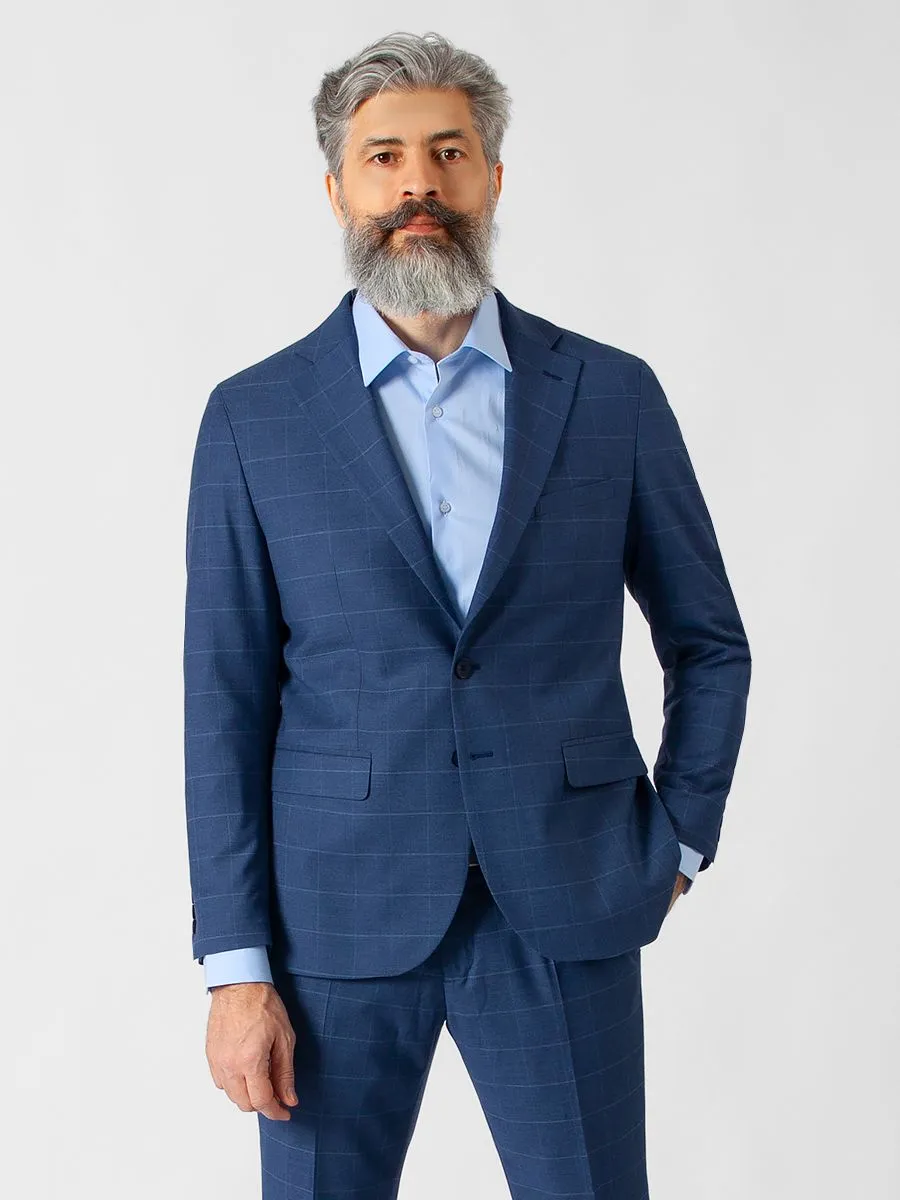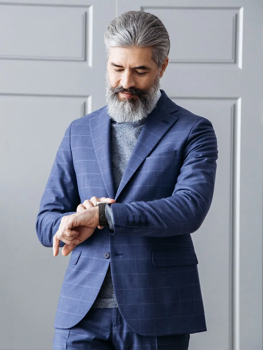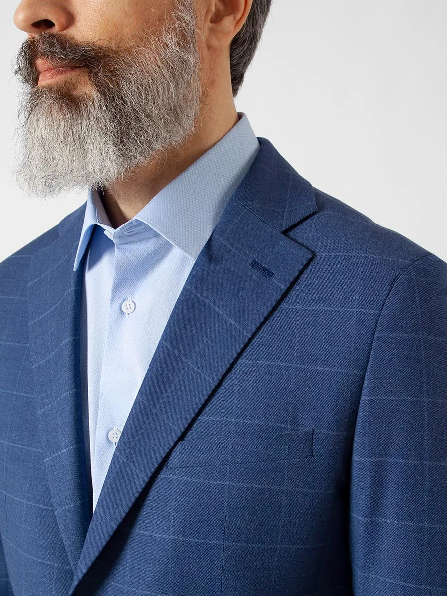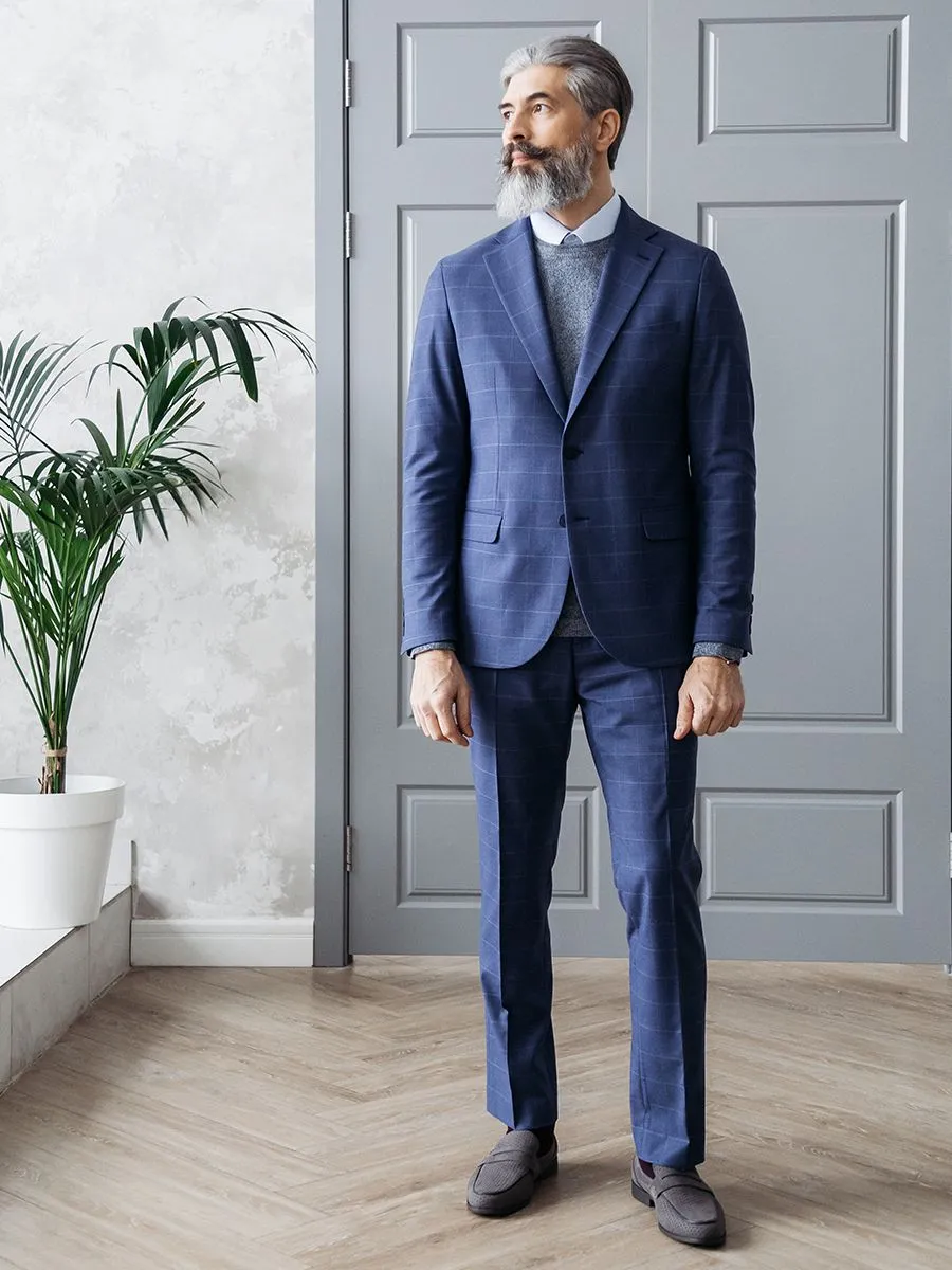 Светлый костюм должен быть настолько светлым, что бы летом он смотрелся - по-сезону, а осенью - современно и актуально! Равномерная крупная клетка на благородной серо-голубой основе меланжевого цвета в полуприлегающем силуэте костюма, снова отвечает на запрос современного мужчины к гардеробу: универсальность в сочетаниях, комфорт в носке. Также в предстоящем сезоне многослойность остается на пике популярности. Данный тренд прекрасно зарекомендовал себя в деловом стиле. Джемпер KN21J018