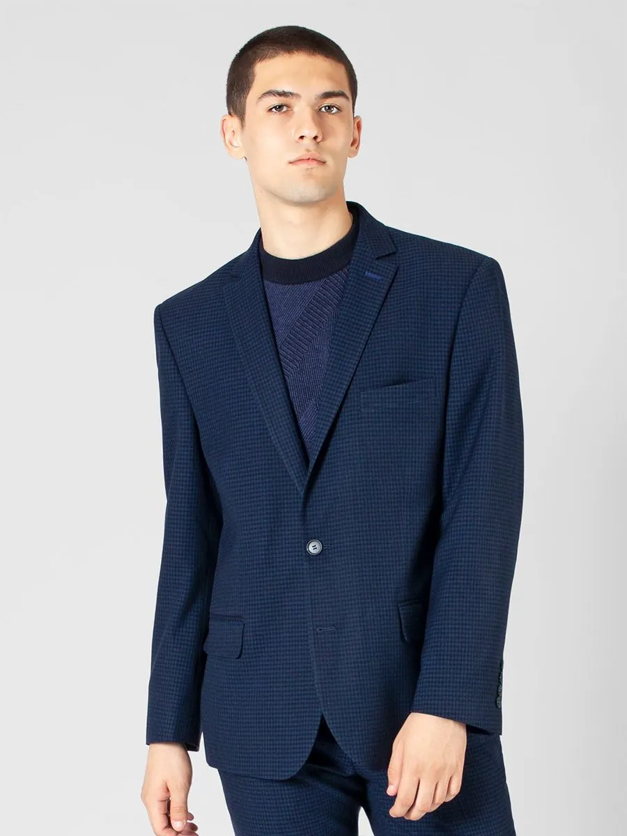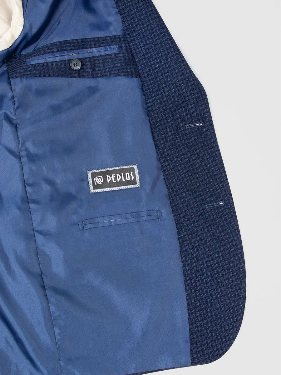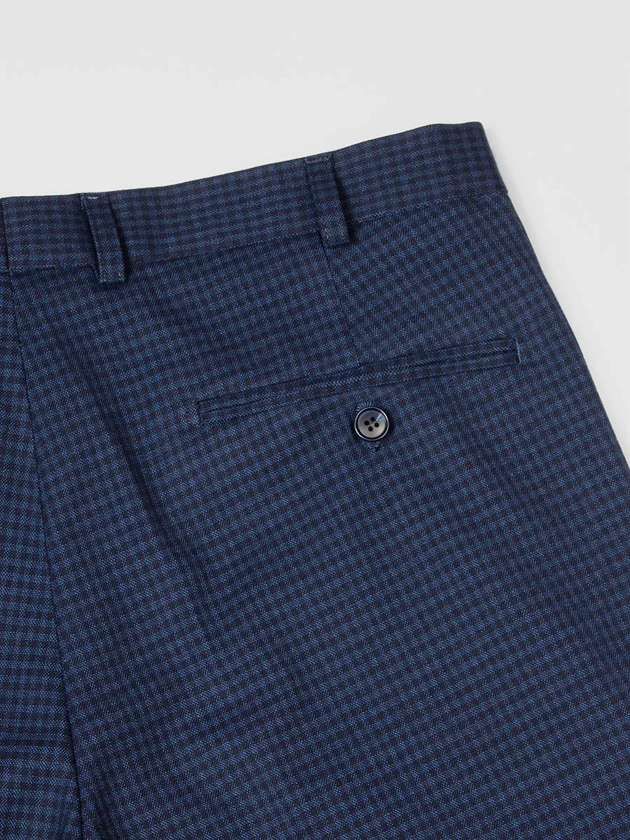 Деловой костюм в классическом силуэте с микродизайном в виде мелкой клетки отлично разбавит гардероб однотонных костюмов. Клетка образована переплетением темно-синих и черных полосок, поэтому не сильно бросается в глаза, но при этом создает фактурность. Классический силуэт пиджака свободно садится по фигуре, под него в холодное время года можно надеть водолазку или джемпер, например, джемпер KN22J014. Две шлицы на спинке также обеспечивают более свободную посадку, благодаря чему удобней класть руки в карманы брюк, что так важно для некоторых мужчин.