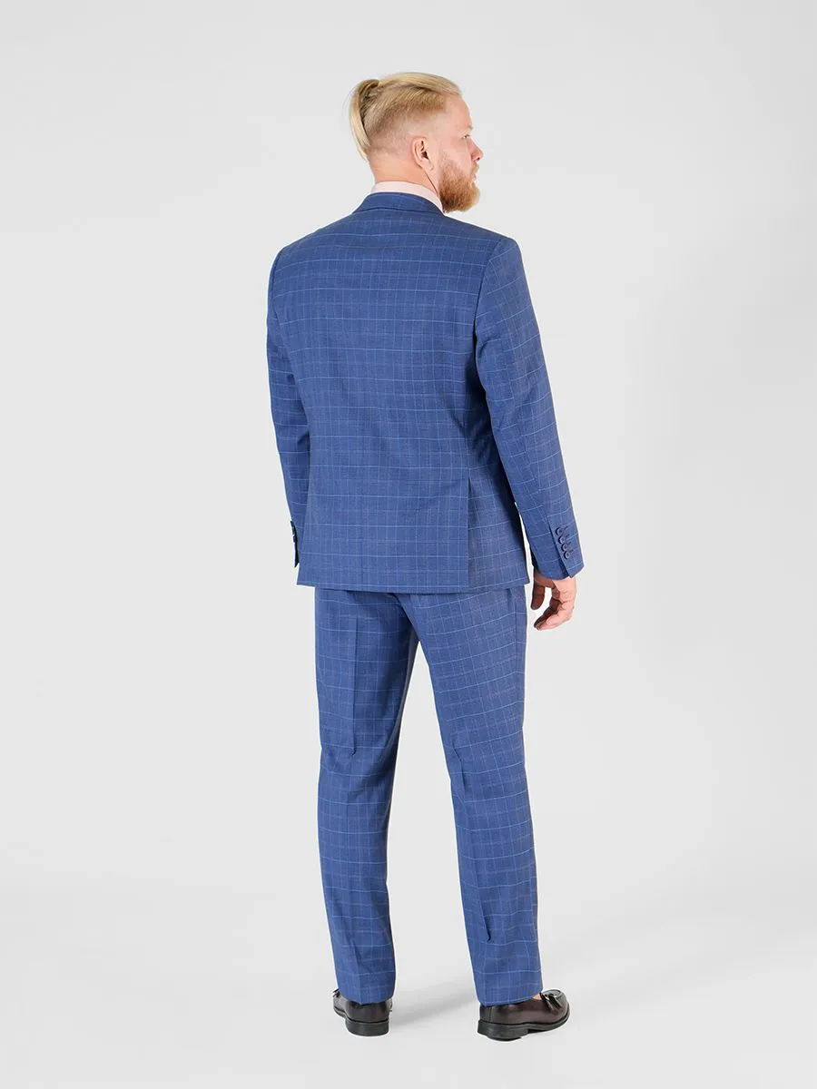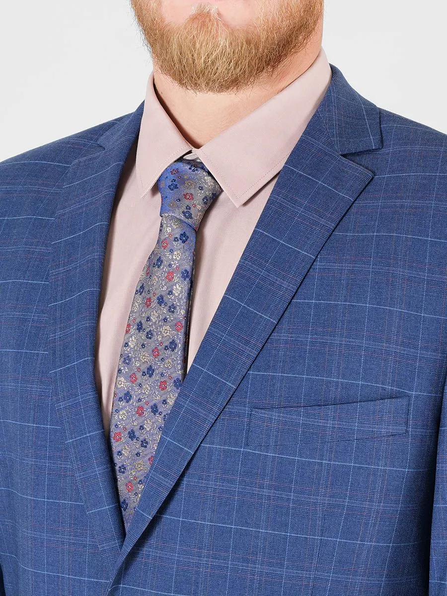 Яркий синий костюм в клетку украсит любой праздник, и конечно, его владельца. Клетка состоит из ярких голубых линий и приглушенных красных. С костюмом будут отлично сочетаться сорочки различных розово-пудровых оттенков, например, SHB034-SL. Классический силуэт костюма дает наибольшую свободу облегания, поэтому в нем вам будет удобней двигаться и сидеть, что так важно на любом мероприятии.