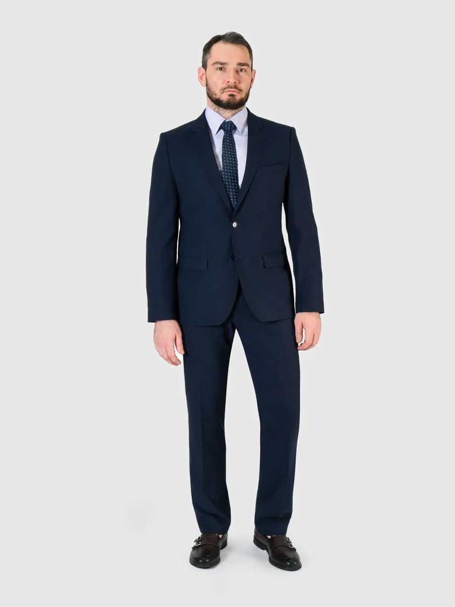 Данный костюм создан для ценителей классики. У пиджака прямой силуэт, который имеет наибольший запас по талии среди других моделей. Темно-синий цвет костюма также относится к базе делового гардероба мужчины. Удобная свободная посадка и практичная, износостойкая ткань делают костюм подходящим вариантом для ежедневной носки. Качественная ткань с микродизайном и безупречная посадка выделят костюм и его обладателя, позволят чувствовать себя уверенно в любой ситуации.