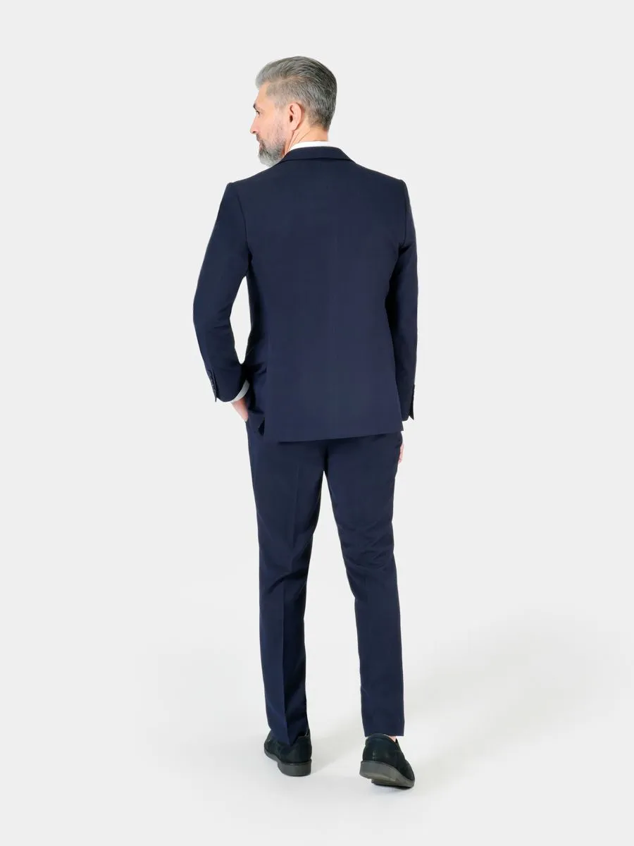 Полуприлегающий силуэт сочетает в себе элементы классического и приталенного стилей. Он слегка облегает фигуру, но не так сильно, как приталенный. Пиджак имеет более узкие линии по сравнению с классическим, подчеркивая форму тела, но не стягивая её. Брюки могут быть как прямыми, так и слегка зауженными, что создает более современный вид.