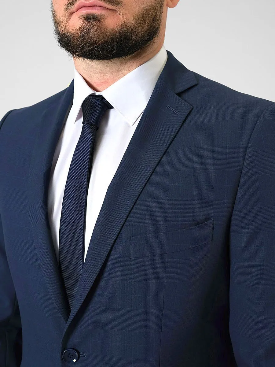 Мужской темно-синий классический костюм в клетку. Этот безупречный костюм идеально подходит для формальных и особых мероприятий. Изготовленный из высококачественных материалов, состоящих из 67% полиэстера, 29% вискозы и 4% ПУ (спандекса), он комфортен и прочен. Этот костюм имеет приталенный силуэт, который подчеркнет вашу фигуру, создавая стильный и элегантный образ. С таким костюмом, вы будете выглядеть уверенно и впечатлять окружающих своим безупречным стилем. Необходимо отметить, что клетчатый узор придает этому костюму особый шарм и делает его неповторимым. Он является идеальным выбором для тех, кто ценит классику с небольшой изюминкой. Дополнительно имеется полуприлегающий (R) силуэт SU24006-R.
