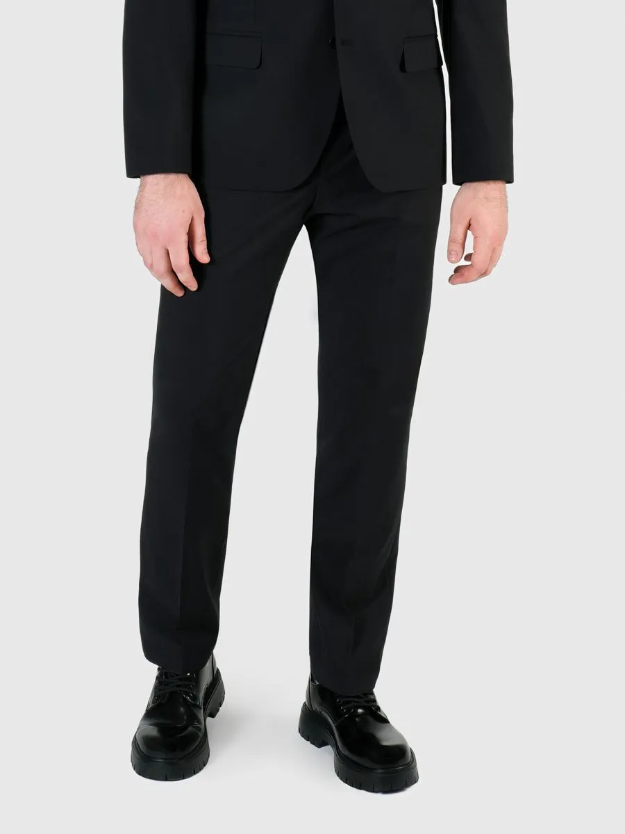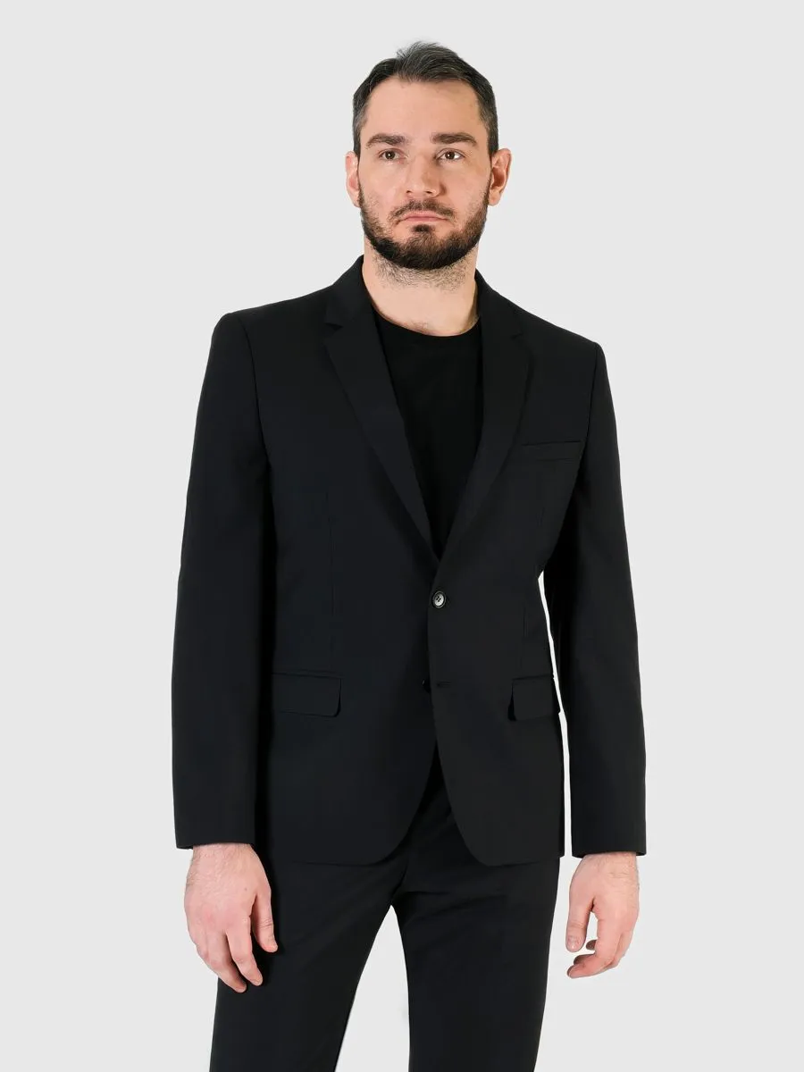 Черный мужской костюм в классическом силуэте – это вечная классика, никогда не выходящая из моды. В этом сезоне черный цвет приобрел новую жизнь и стал настоящим трендом. Независимо от того, насколько официальное или современное событие вы планируете посетить, такой костюм идеально подойдет для создания самых элегантных и стильных образов.Одним из вариантов является классический и торжественный наряд с белой сорочкой и черной бабочкой. Такой образ всегда придаст вам благородства и изысканности. Однако, черный костюм также может быть использован для творческого и более смелого образа. Простая черная футболка или лонгслив в сочетании с костюмом добавят вам нотку современности и дерзости.Преимуществами этого костюма являются прямой силуэт пиджака и брюк, а также спандекс, входящий в состав ткани, благодаря чему его носить очень комфортно и свободно. Он не стягивает тело и позволяет свободно двигаться. Таким образом, выбирая черный костюм, вы получаете не только один наряд, а несколько различных образов, подходящих для любого события и настроения.