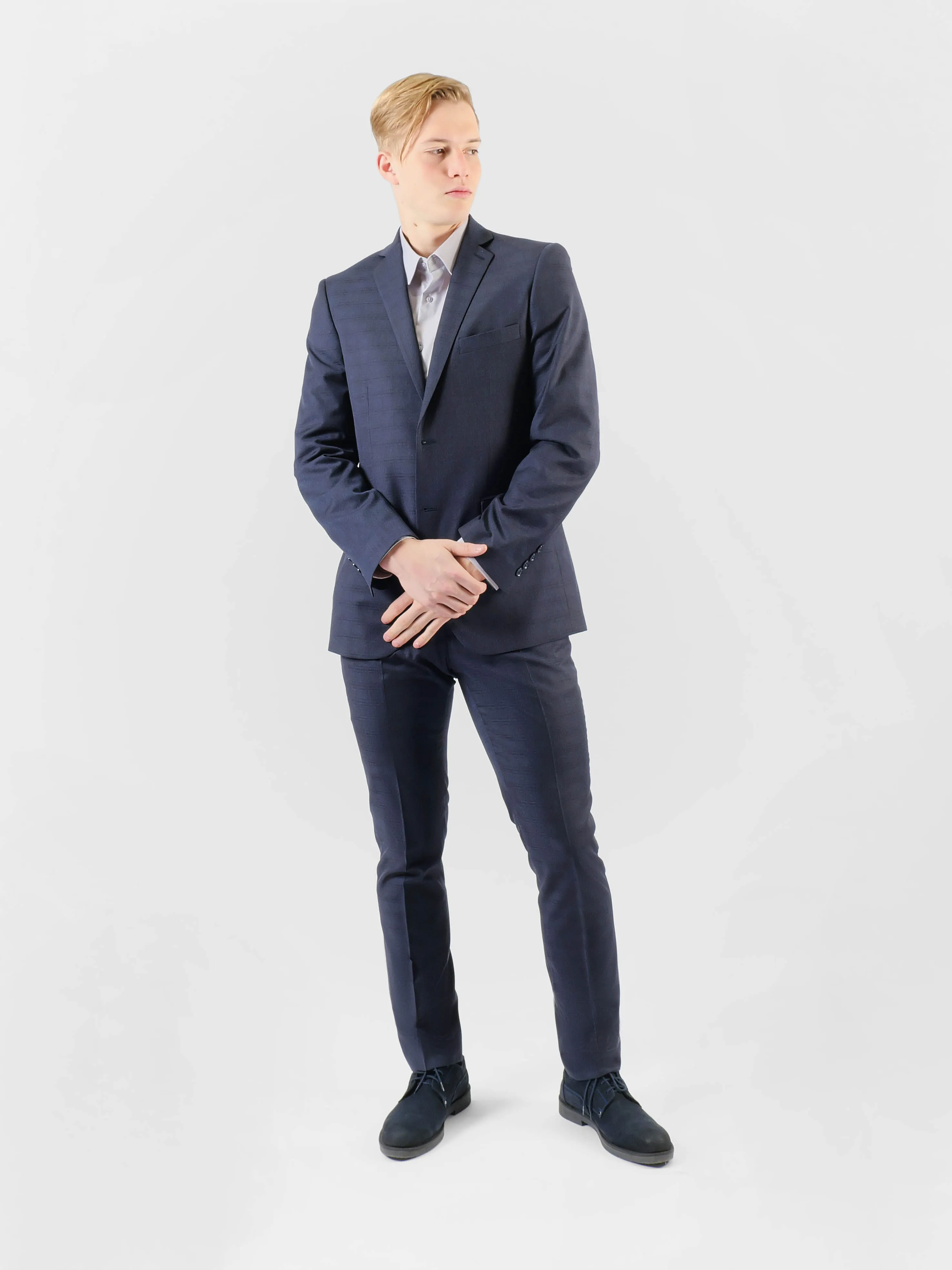 Классический силуэт костюма имеет свободный и расслабленный крой. Он не облегает тело, позволяя свободное движение и комфорт. Пиджак имеет более широкие плечи, что создает сбалансированный вид. Брюки обычно прямые, без излишней утяжки. Этот стиль подходит для различных случаев, включая деловые встречи и торжественные мероприятия.