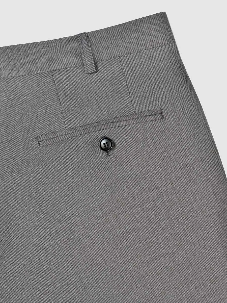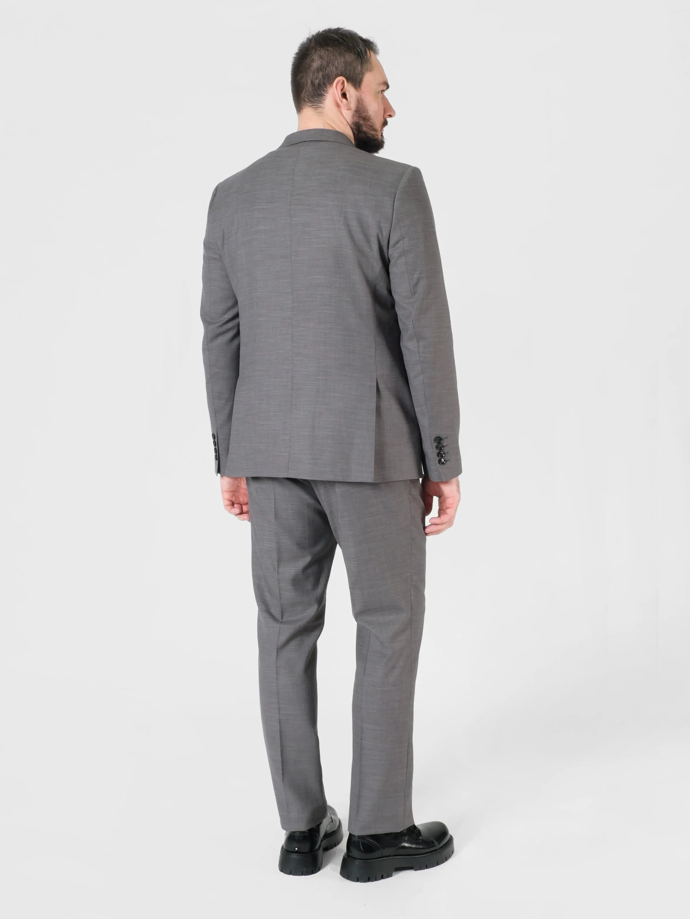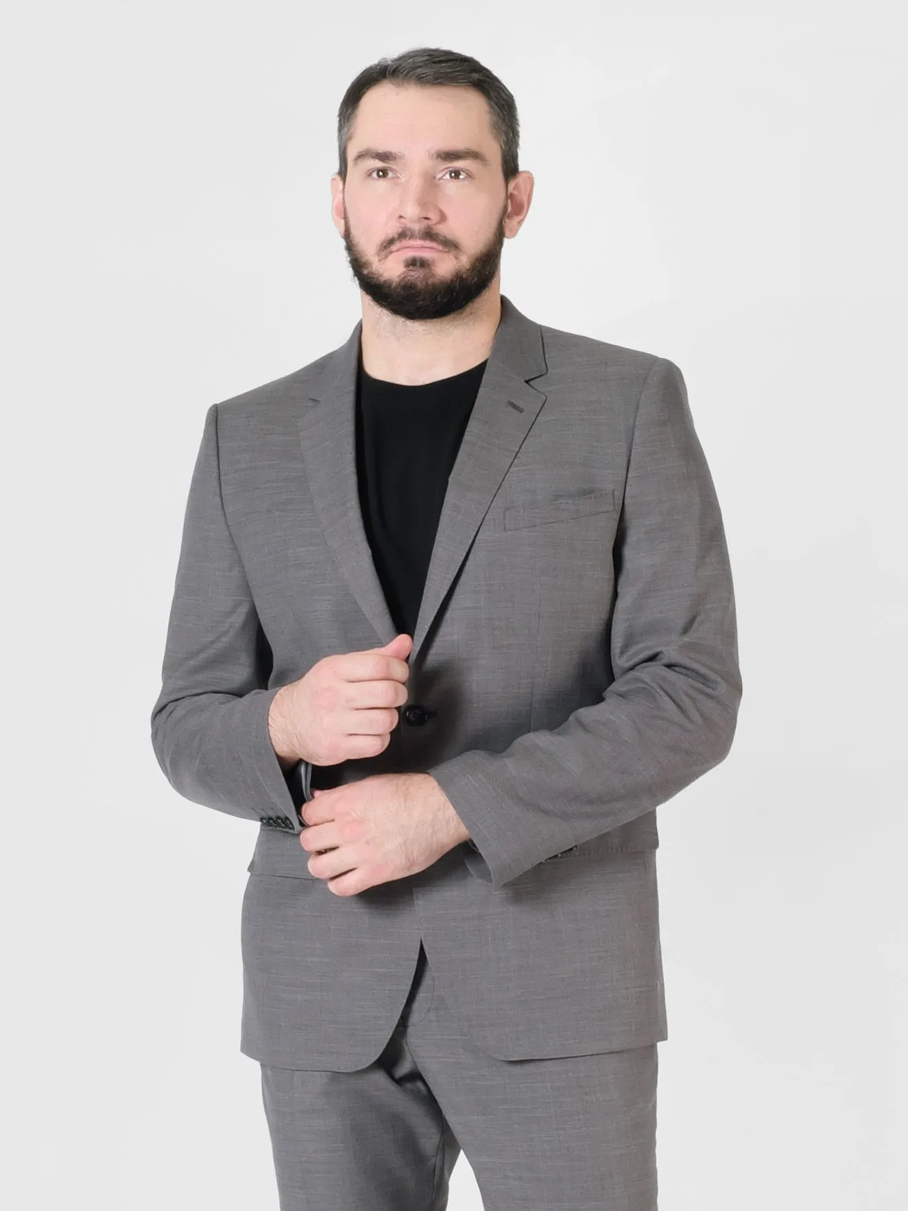 Серый мужской костюм является базовым элементом гардероба, воплощающим стиль и элегантность. Его полуприлегающий силуэт пиджака подчеркивает мужественную фигуру, а брюки слегка зауженые к низу, создают модный и аккуратный образ. Лацканы пиджака украшены уникальной декоративной отделкой, которая исторически изготавливается вручную, придавая им особый шарм и изысканность. К тому же, ткань костюма обладает необычной неоднородной текстурой, которая притягивает взгляды.