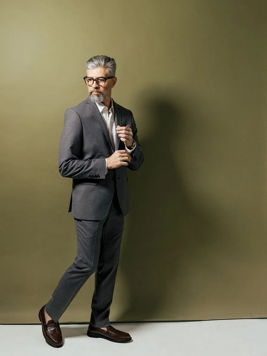 Полуприлегающий силуэт сочетает в себе элементы классического и приталенного стилей. Он слегка облегает фигуру, но не так сильно, как приталенный. Пиджак имеет более узкие линии по сравнению с классическим, подчеркивая форму тела, но не стягивая её. Брюки могут быть как прямыми, так и слегка зауженными, что создает более современный вид.
