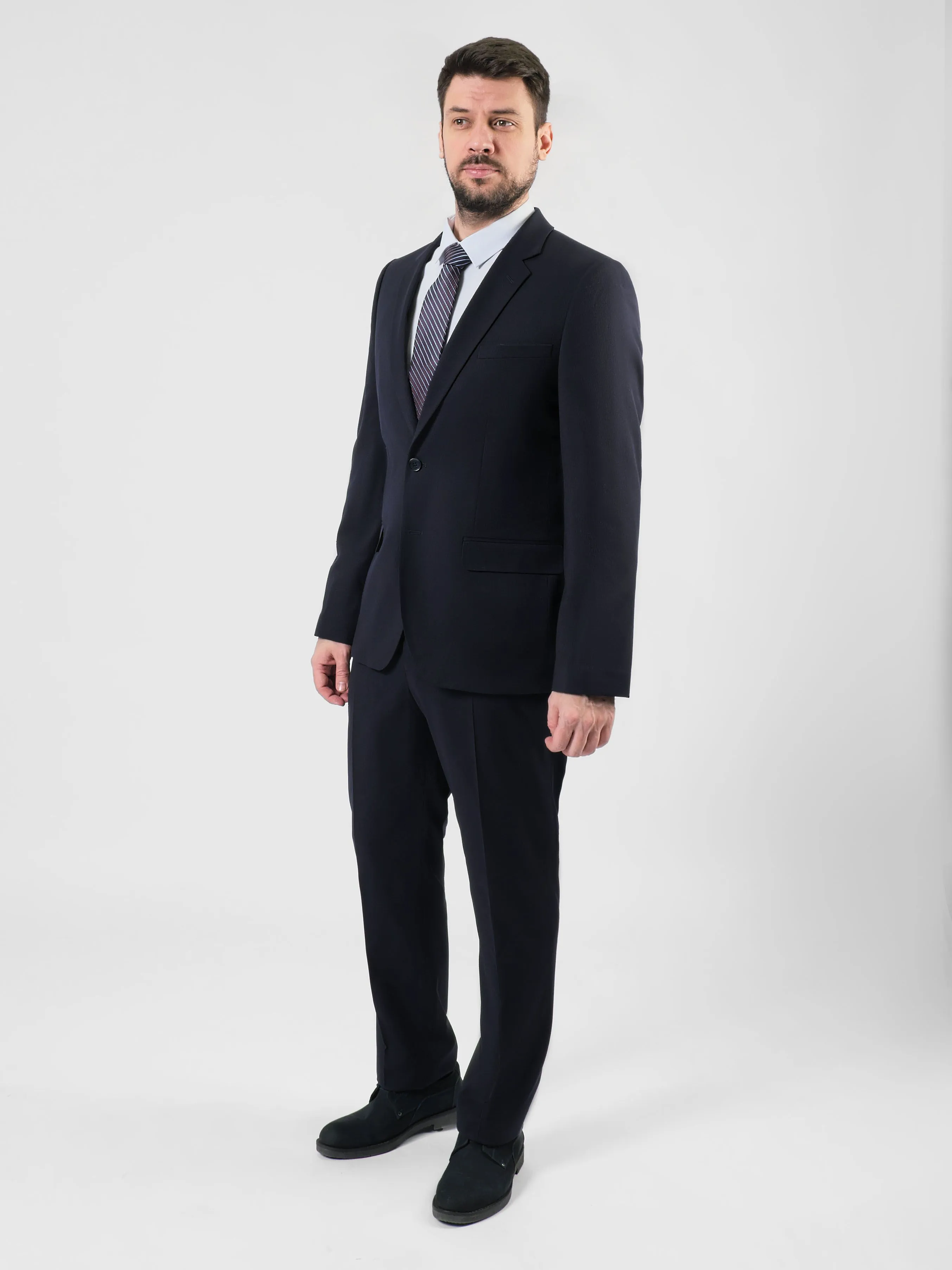 Фактурный однотонный темно-синий мужской костюм идеально подходит для стильного и современного джентльмена, который ценит качество и элегантность в каждой детали. Выполненный в классическом силуэте, этот костюм становится идеальным выбором как для деловых встреч, так и для торжественных мероприятий, где требуется выглядеть безукоризненно. Классический крой гарантирует идеальную посадку по фигуре, подчёркивая сильные стороны обладателя и создавая безупречный образ, который привлечёт внимание. Внимание к деталям отделки и высокая мастерство исполнения позволяют этому костюму оставаться на пике моды и востребованности среди людей, предпочитающих стиль и статус в своей одежде.
